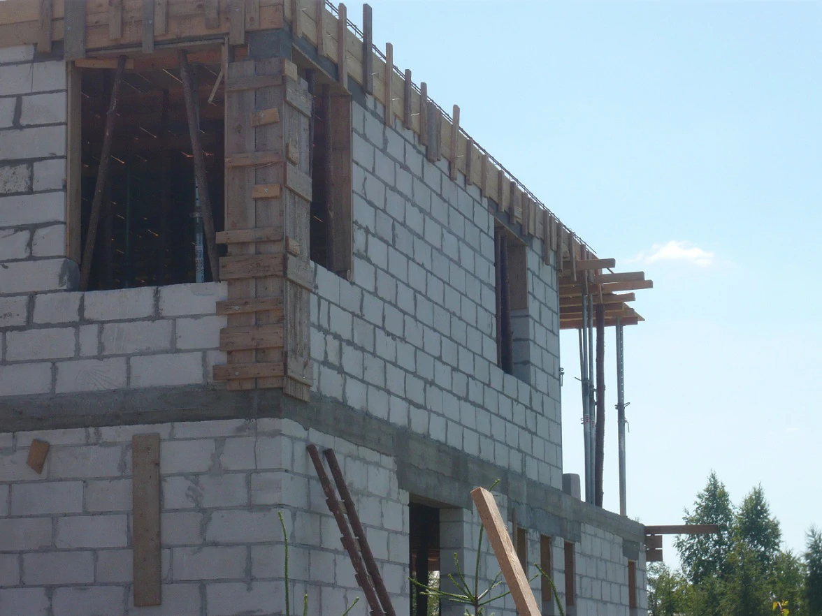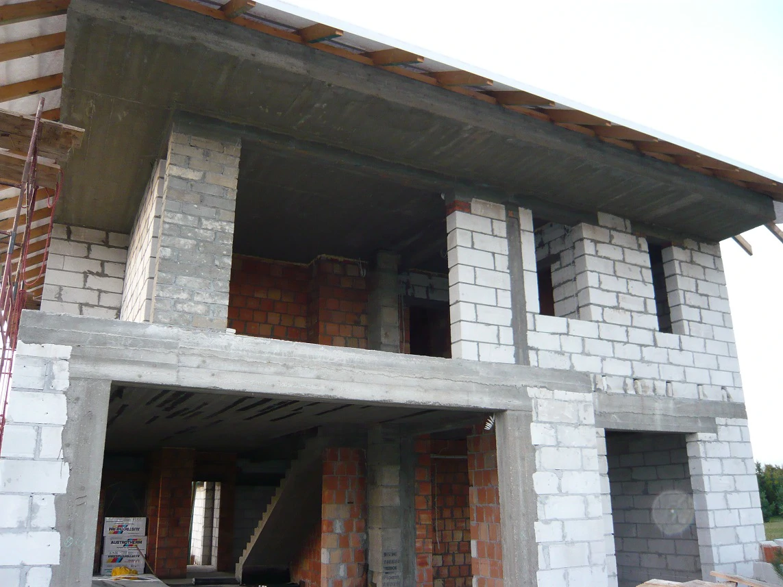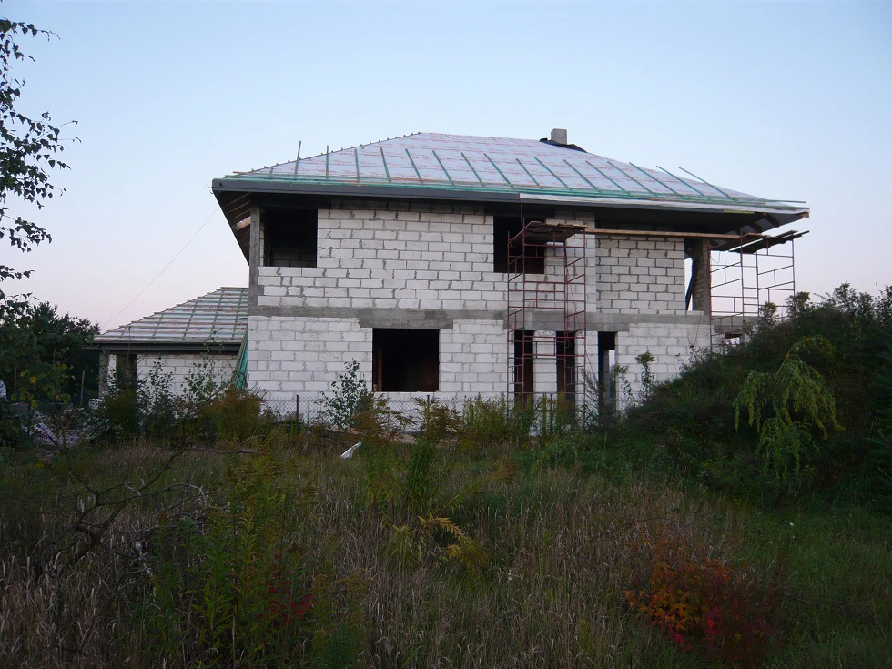 Projekt indywidualny. Budynek posadowiony na ławach fundamentowych. Ściany wykonane z silikatów i porothermu.