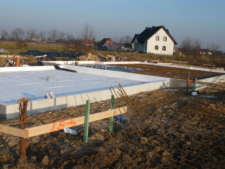 Projekt indywidualny. Grunty torfowe. Budynek posadowiony na płycie fundamentowej. Ściany wykonane z silikatów. Elewacja BSO. Pokrycie dachowe blachodachówka.