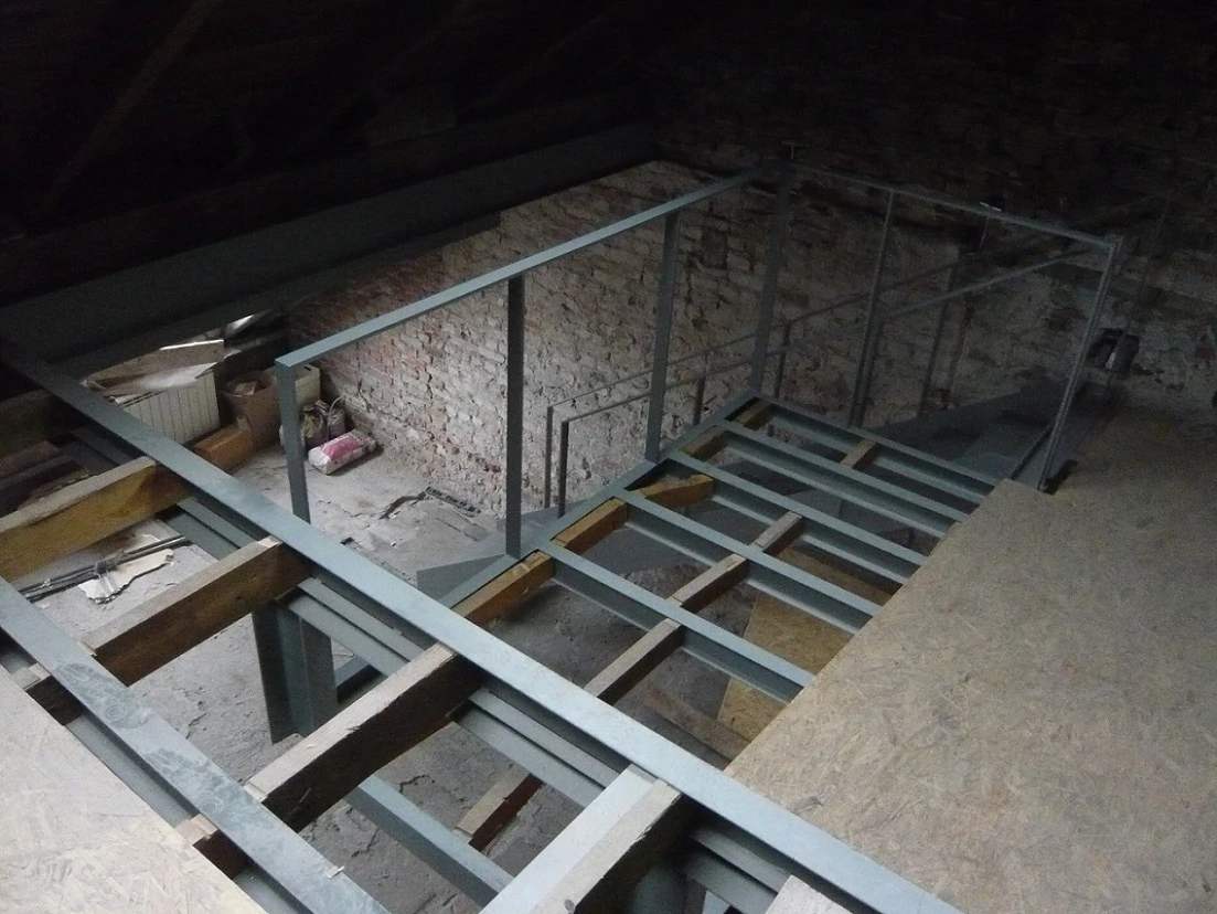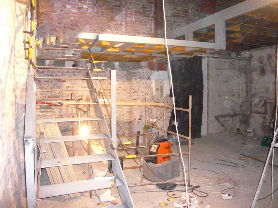 Wykonanie remontu mieszkania. Przebudowa układu i przygotowania przestrzeni pod nowe funkcje. Wykonanie antresoli – stalowa rama + podest (częściowo z płytą OSB) oraz montaż schodów stalowych z balustradą. Wzmocnienia / nowe oparcia konstrukcji – kotwienie stalowych słupów i belek w murze/posadzce, przygotowanie pod przyszłą podłogę antresoli.