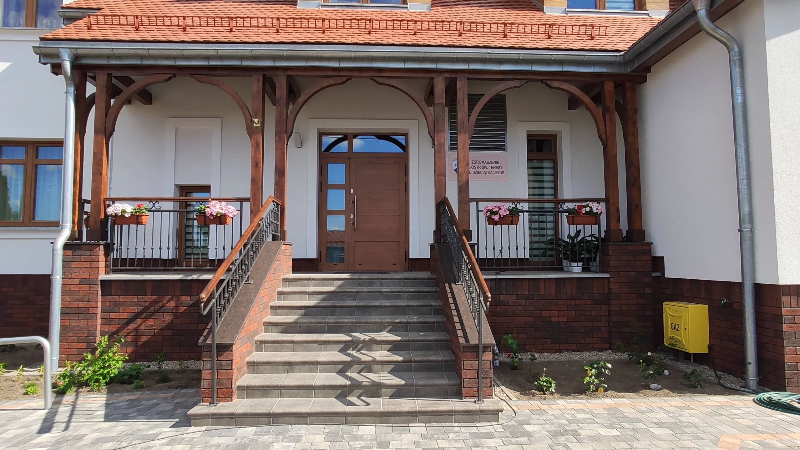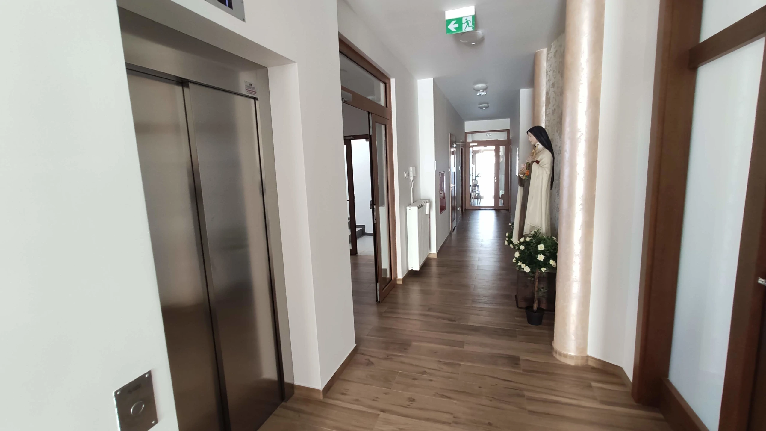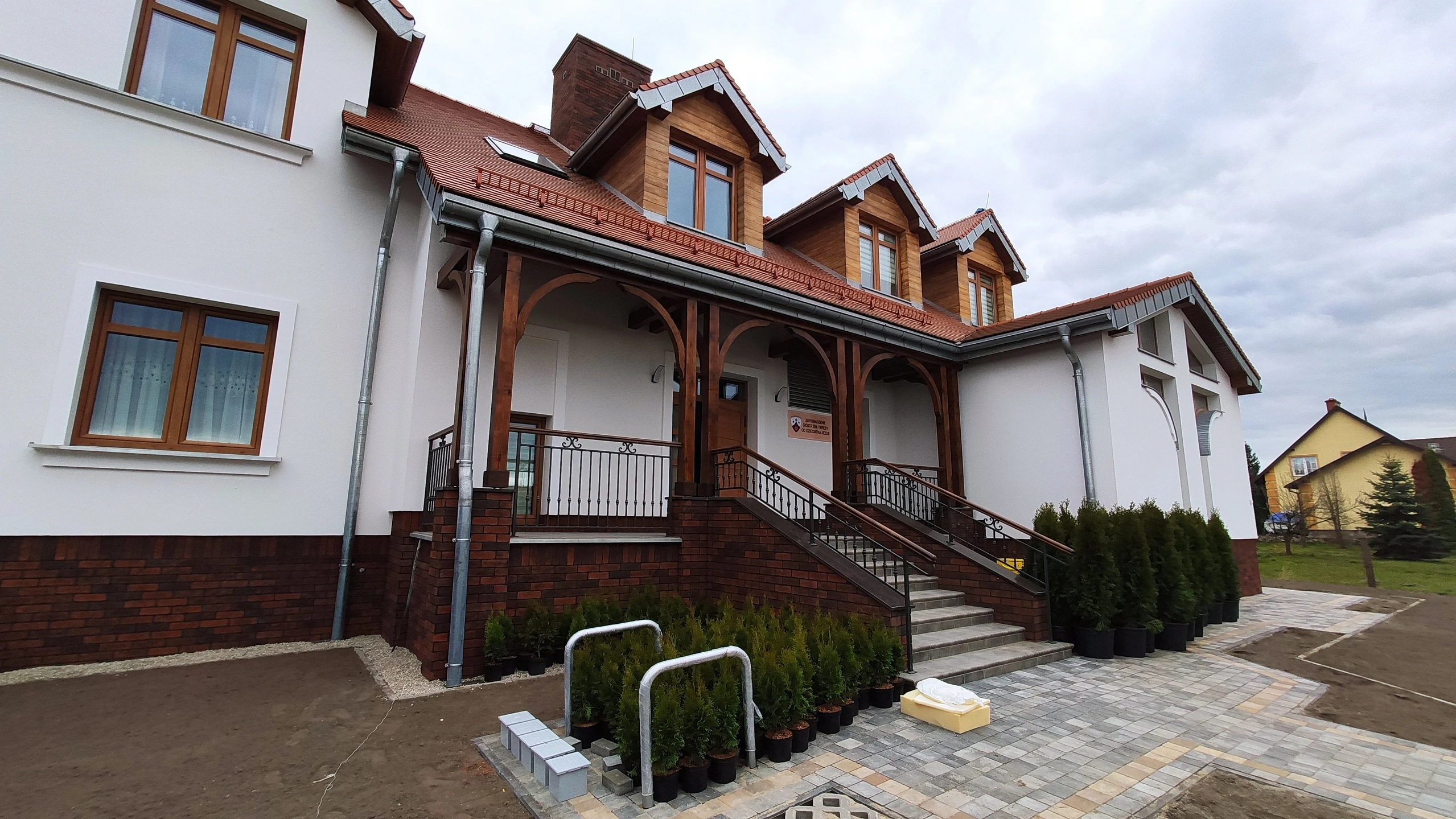 Projekt indywidualny. Budynek zamieszkania zbiorowego spełniający klasyfikacje ogniowe. Budynek podpiwniczony, piwnica wykonana w technologii białej wanny, rampa zjazdowa. Ściany nadziemia wykonane z silikatów. Wentylacja mechaniczna nawiewno-wywiewna. Kocioł gazowy spięty w kaskadę. Winda. Witraże w kaplicy. Stolarka okienna aluminium i PCV. Dachówka karpiówka, obróbki z tytan-cynku. Powierzchnia budynku: 900 m2
