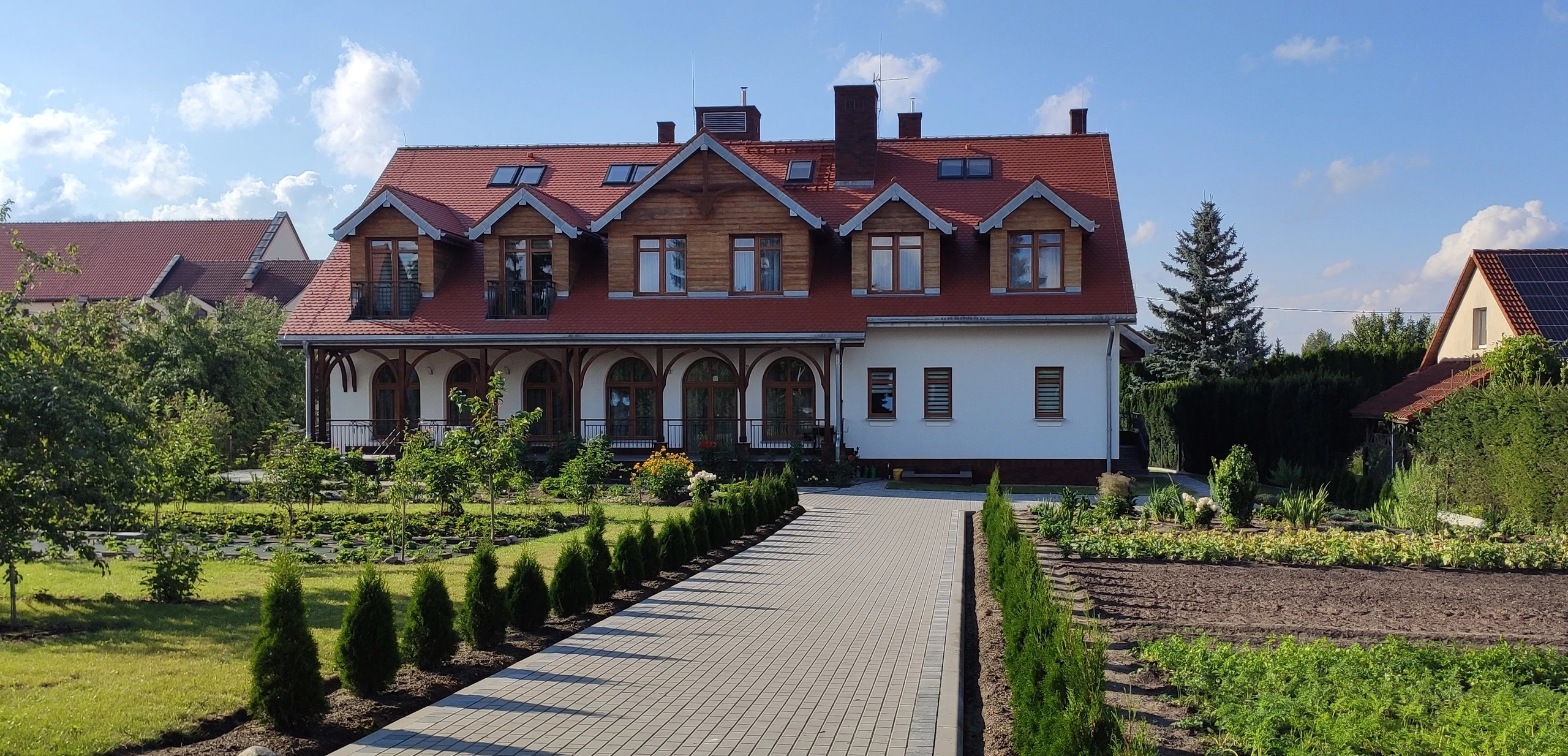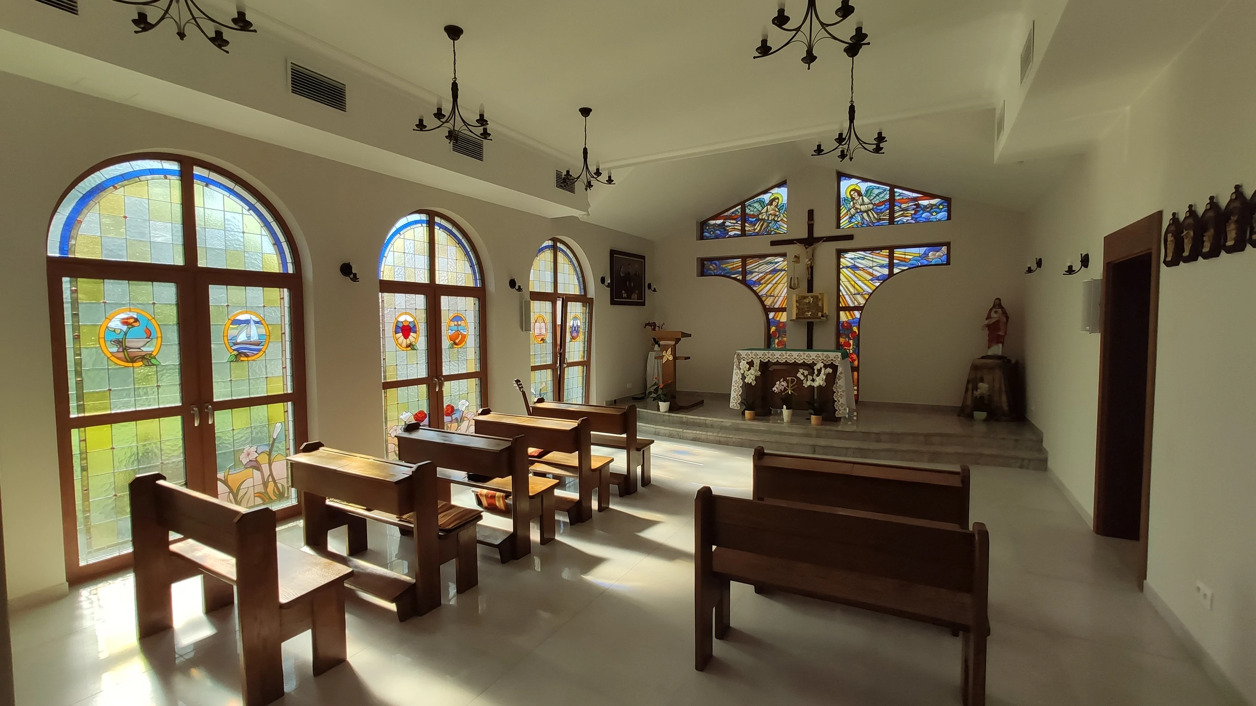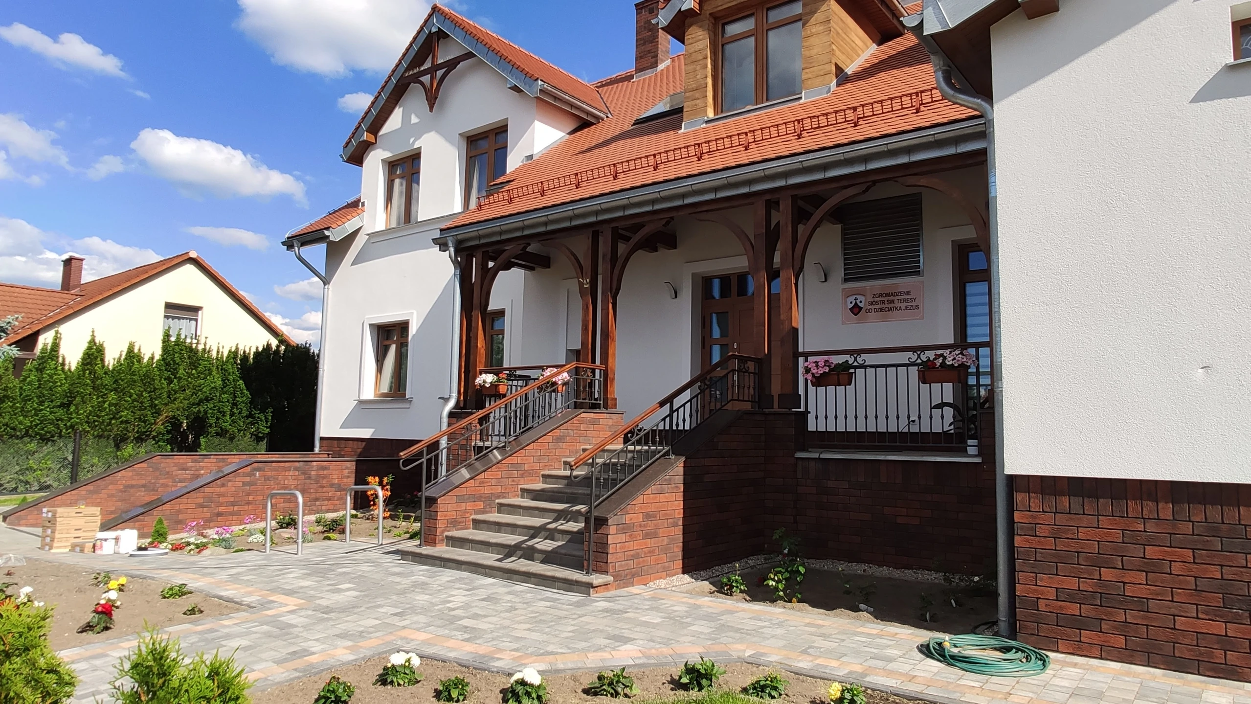 Projekt indywidualny. Budynek zamieszkania zbiorowego spełniający klasyfikacje ogniowe. Budynek podpiwniczony, piwnica wykonana w technologii białej wanny, rampa zjazdowa. Ściany nadziemia wykonane z silikatów. Wentylacja mechaniczna nawiewno-wywiewna. Kocioł gazowy spięty w kaskadę. Winda. Witraże w kaplicy. Stolarka okienna aluminium i PCV. Dachówka karpiówka, obróbki z tytan-cynku. Powierzchnia budynku: 900 m2