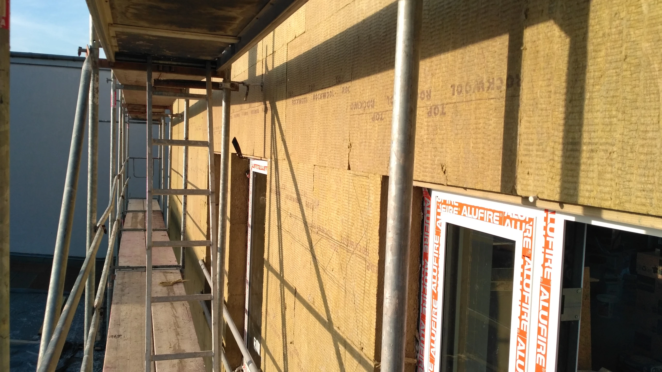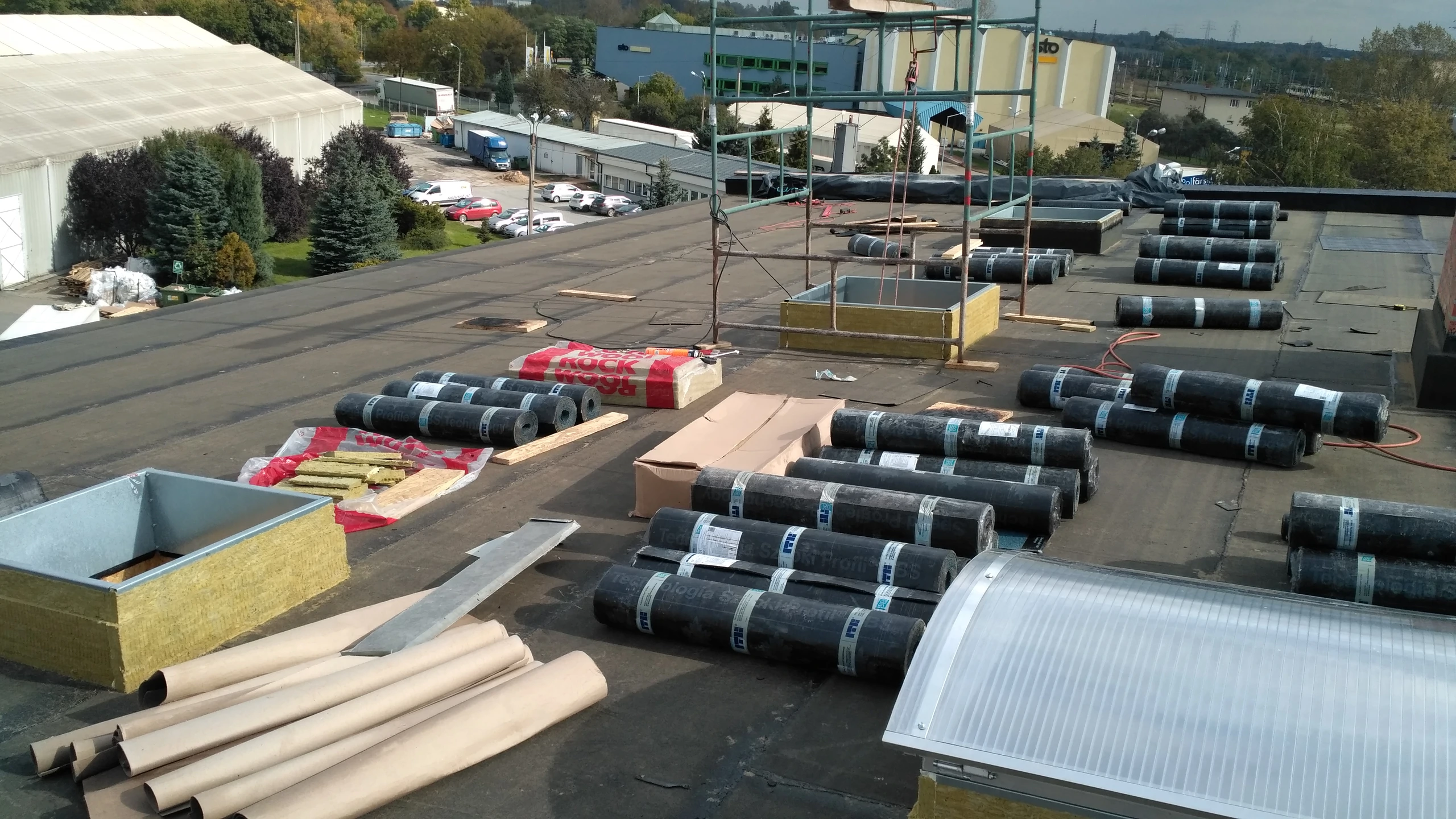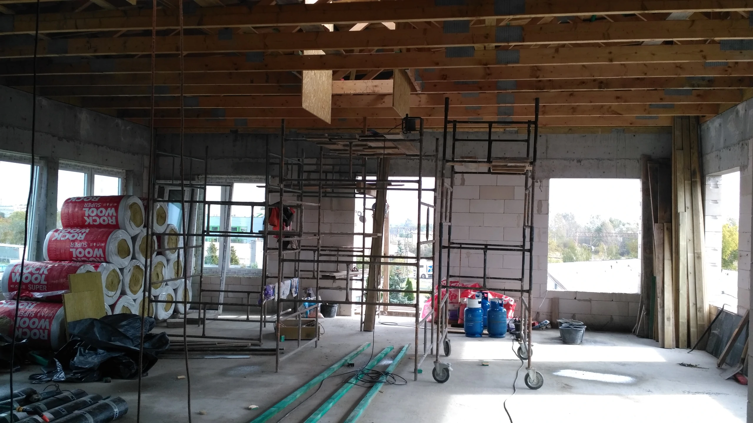 Wykonanie nadbudowy w budynku biurowym nad drugim piętrem. Ściany wykonane z silikatów, wiązary dachowe. Wystawienie belek pod montaż tarasu w przyszłości. Wykonanie docieplenia stropu, i adaptacja nadbudowy na pomieszczenia biurowe.