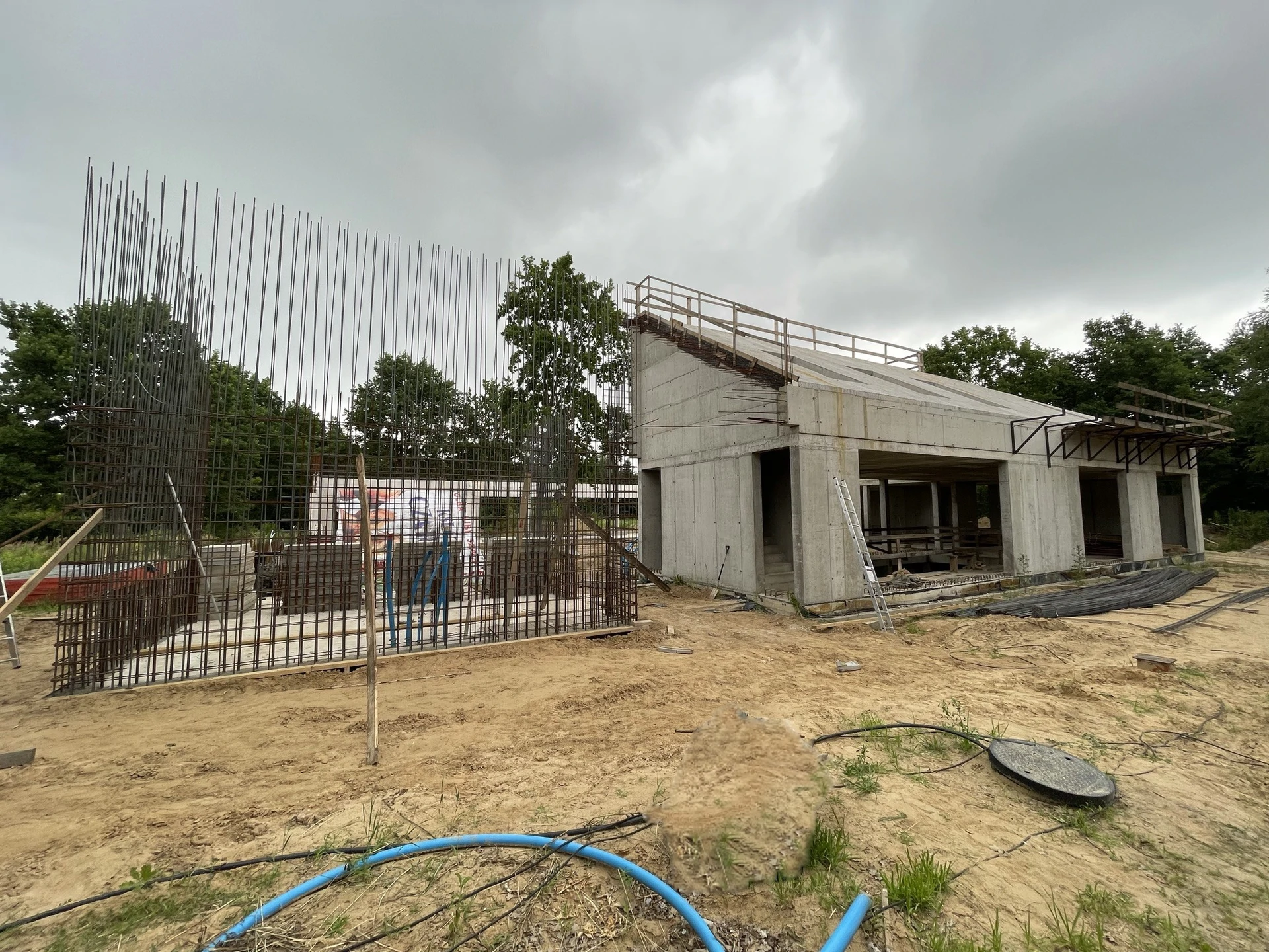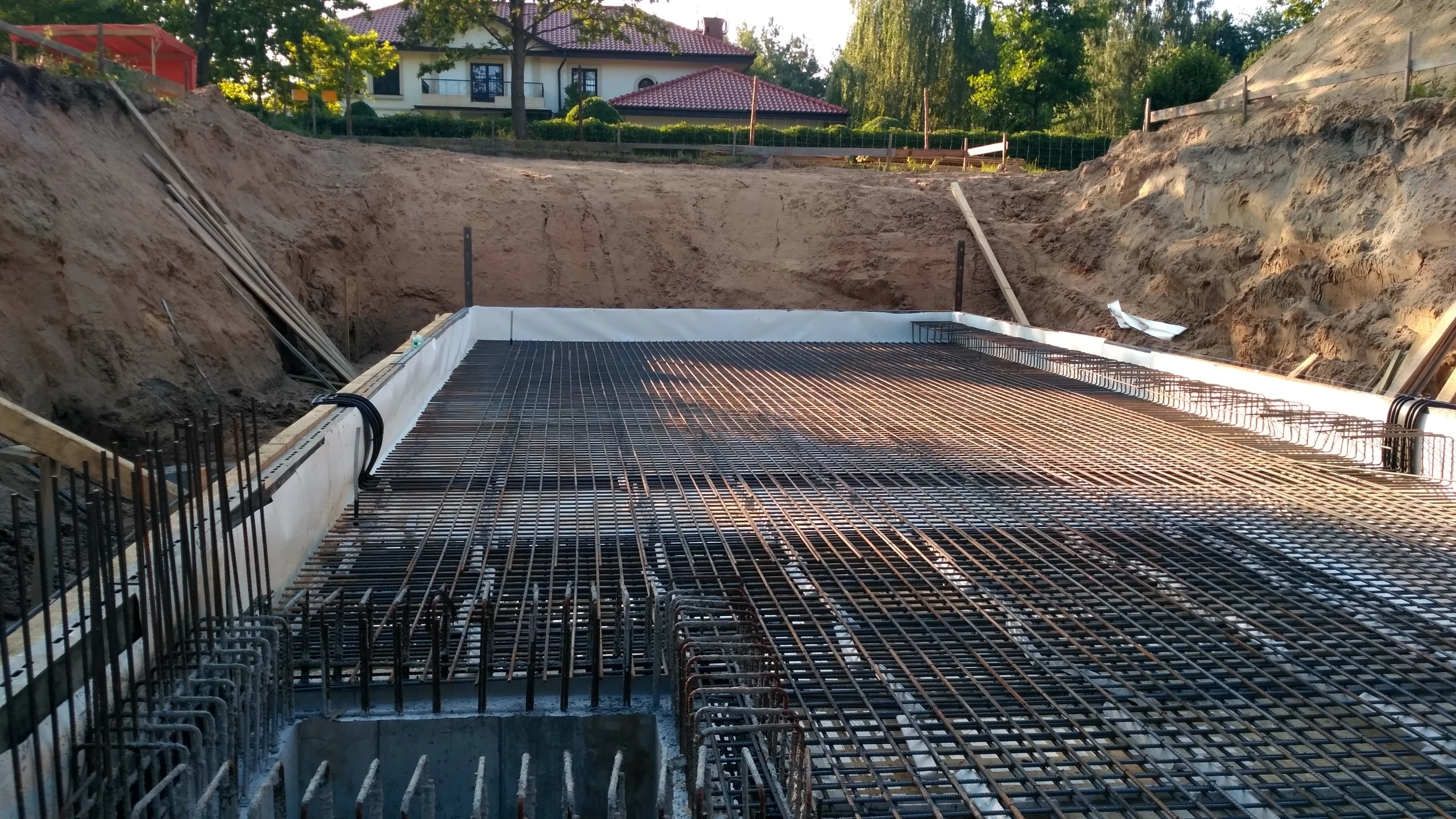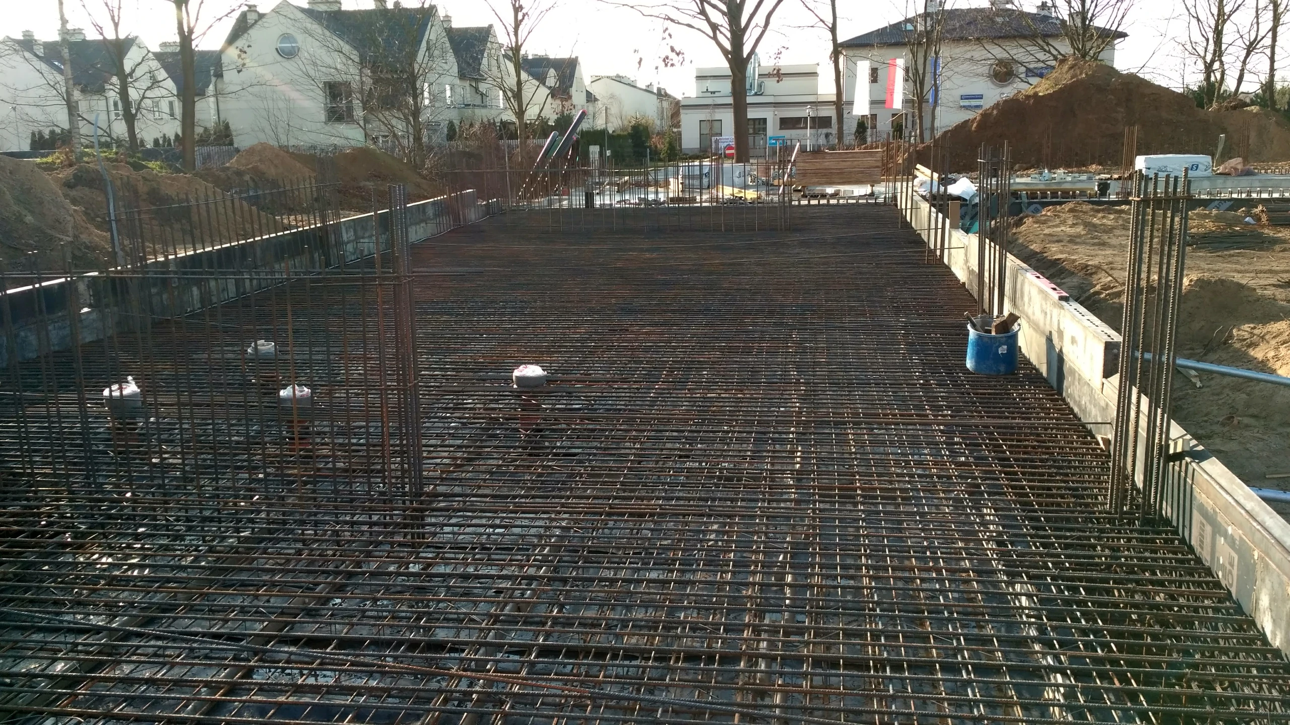 Pozostała część obiektu została posadowiona na płycie fundamentowej, z odpowiednim przygotowaniem podłoża i zbrojenia pod ściany oraz słupy żelbetowe.