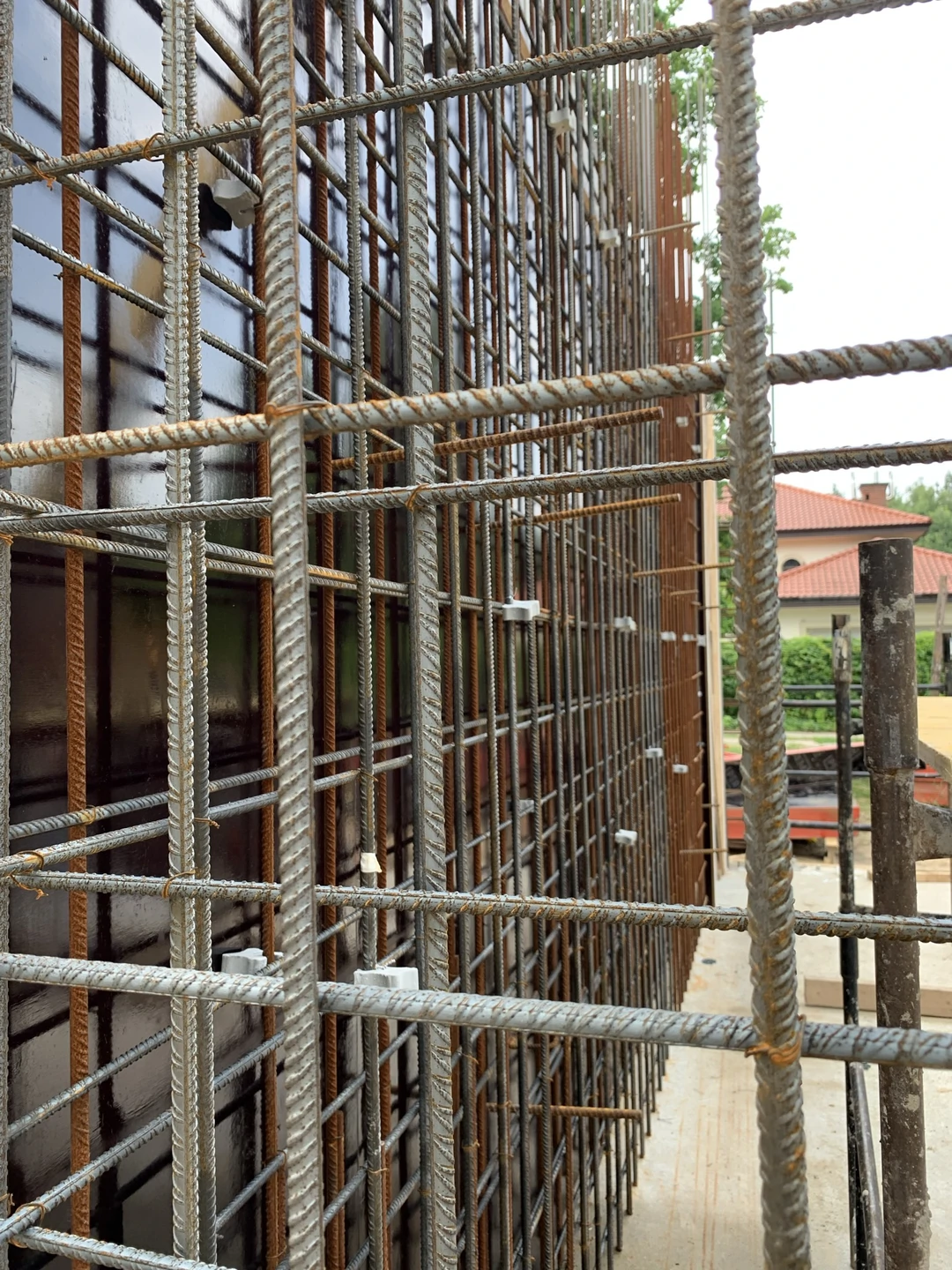 W budynku wykonano szczelną piwnicę w technologii białej wanny (żelbet wodoszczelny), z naciskiem na ciągłość hydroizolacyjną konstrukcji oraz rozwiązania detali (połączenia płyta–ściana, przerwy robocze, przejścia instalacyjne).