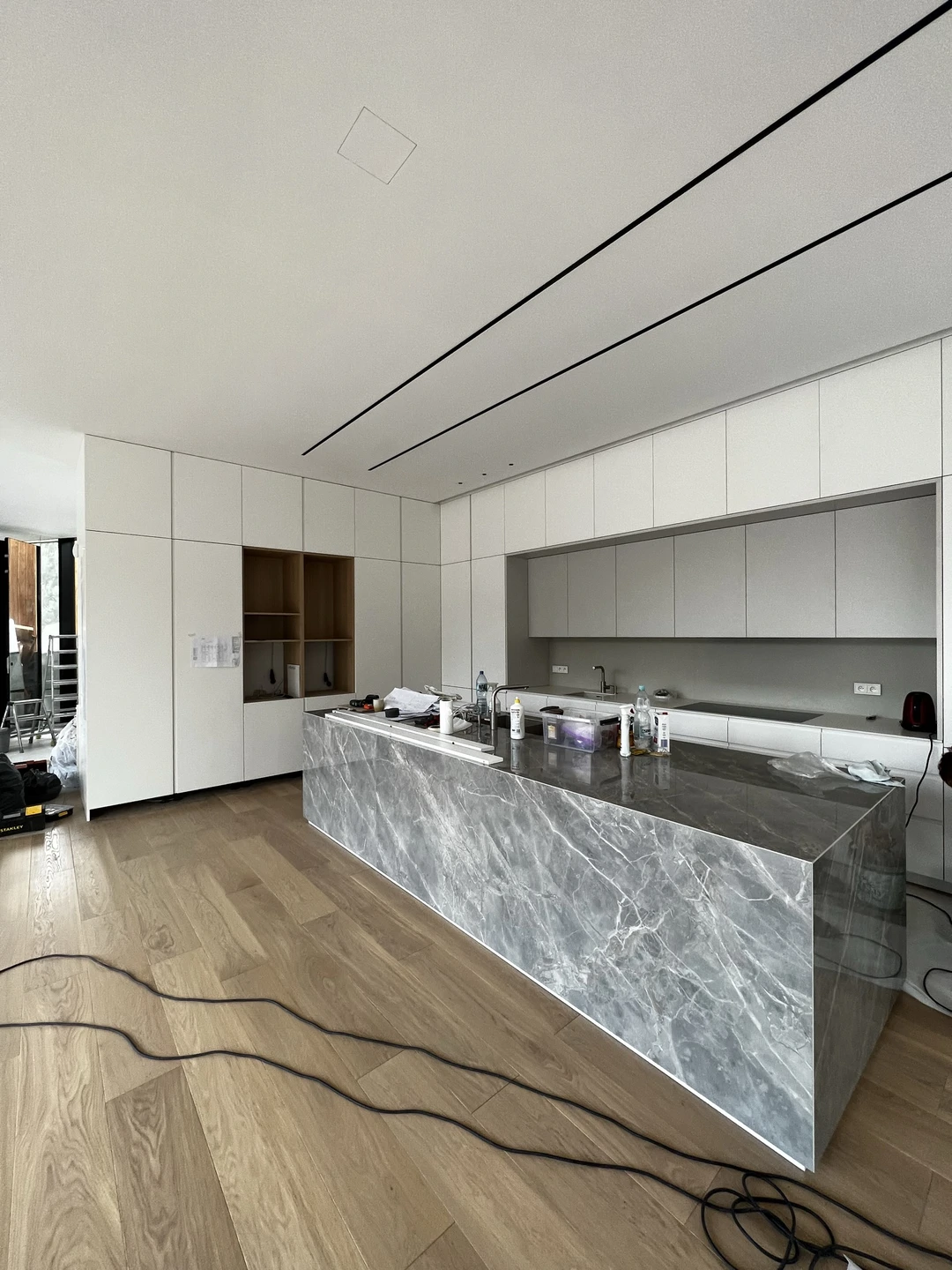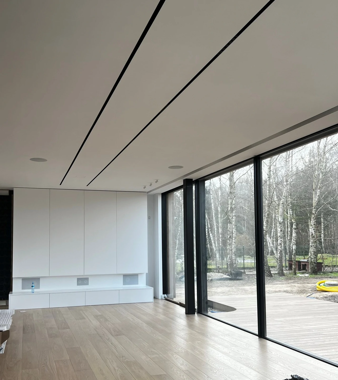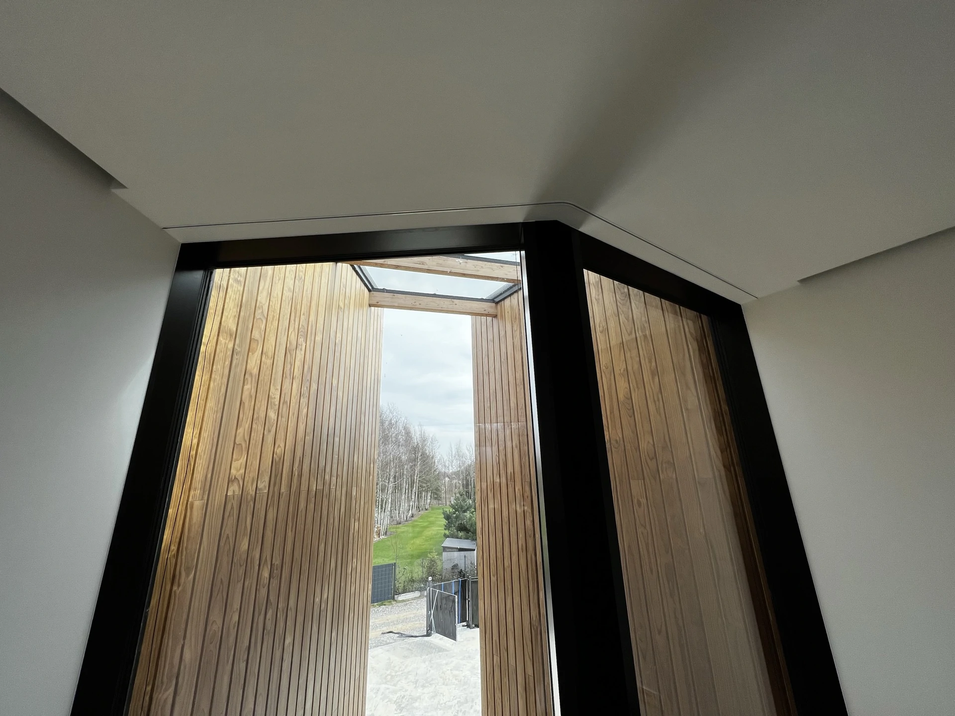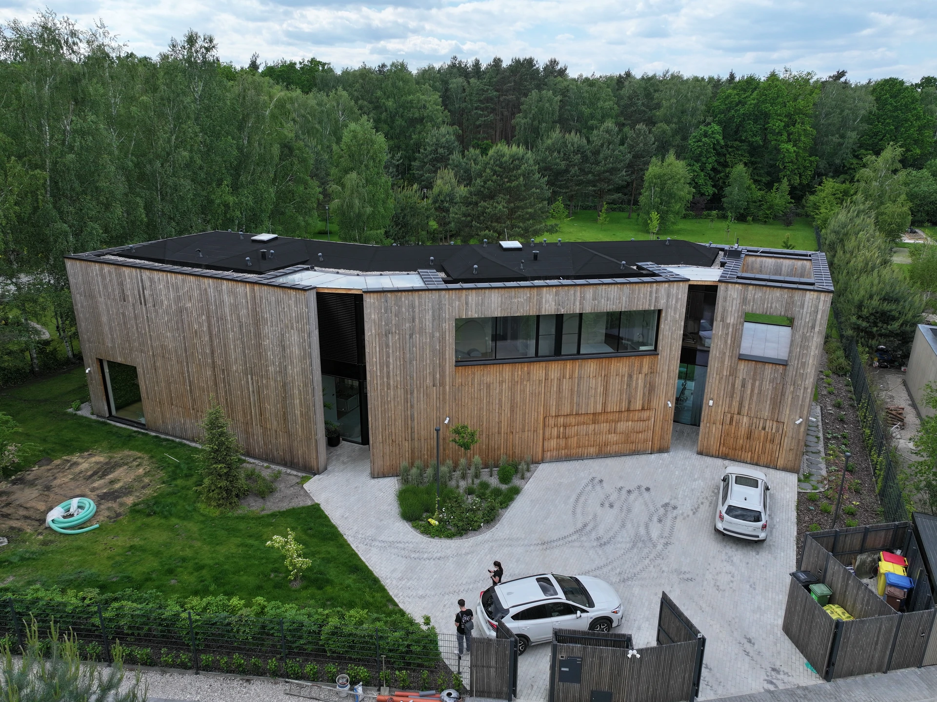 wokół domu wykończono w sposób minimalistyczny: utwardzony podjazd, opaski komunikacyjne oraz
