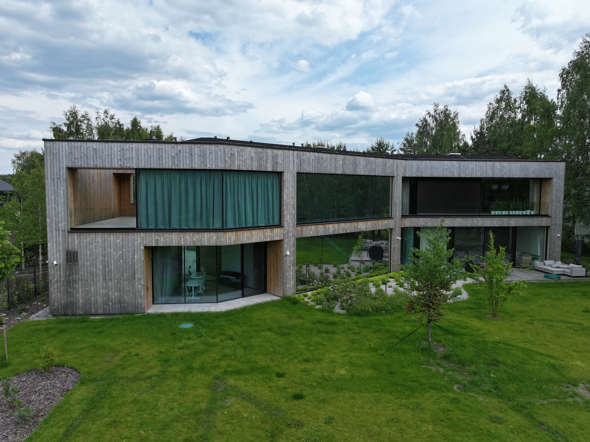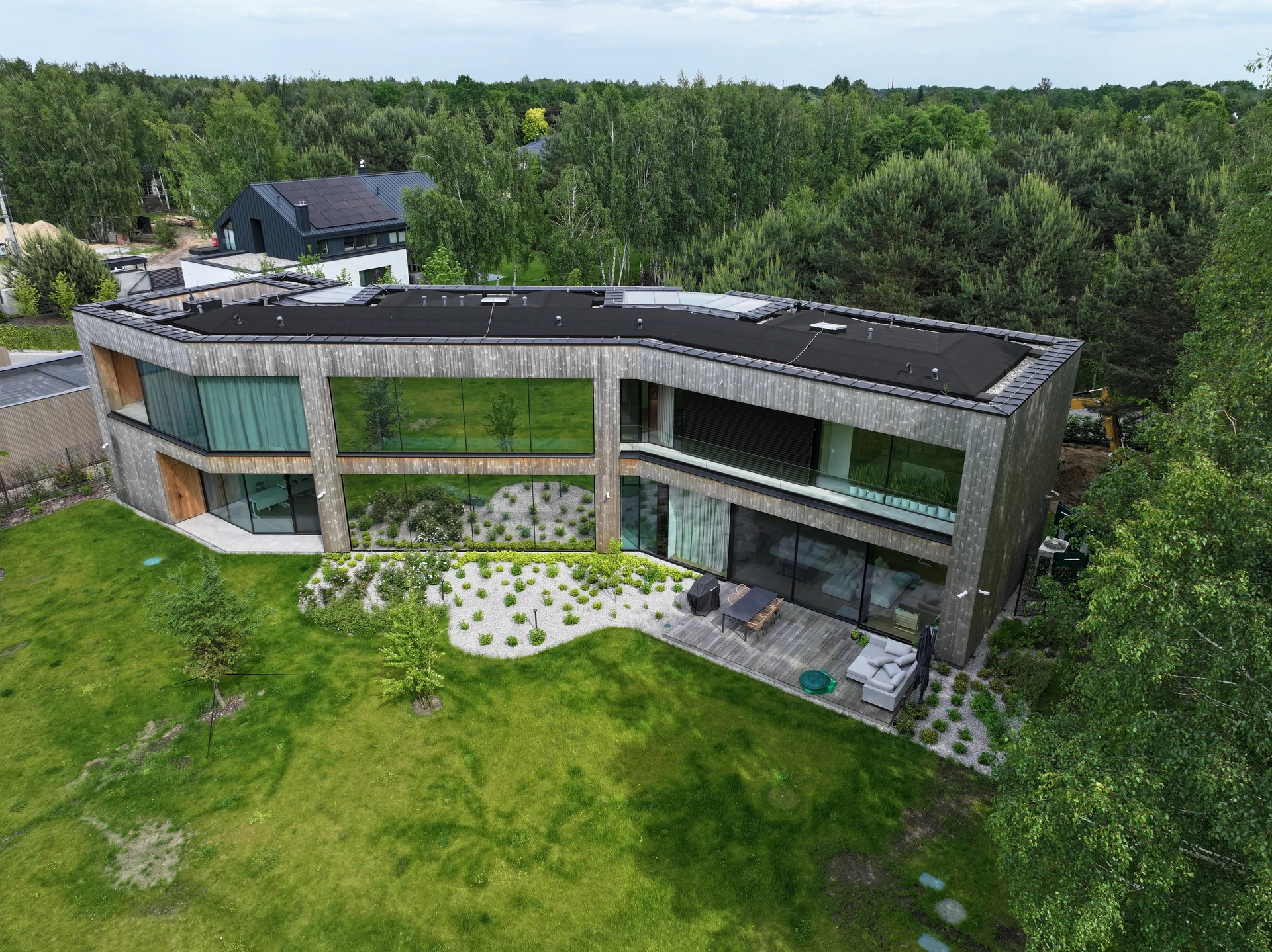 przeszkleniami i rozległymi strefami dziennymi.
