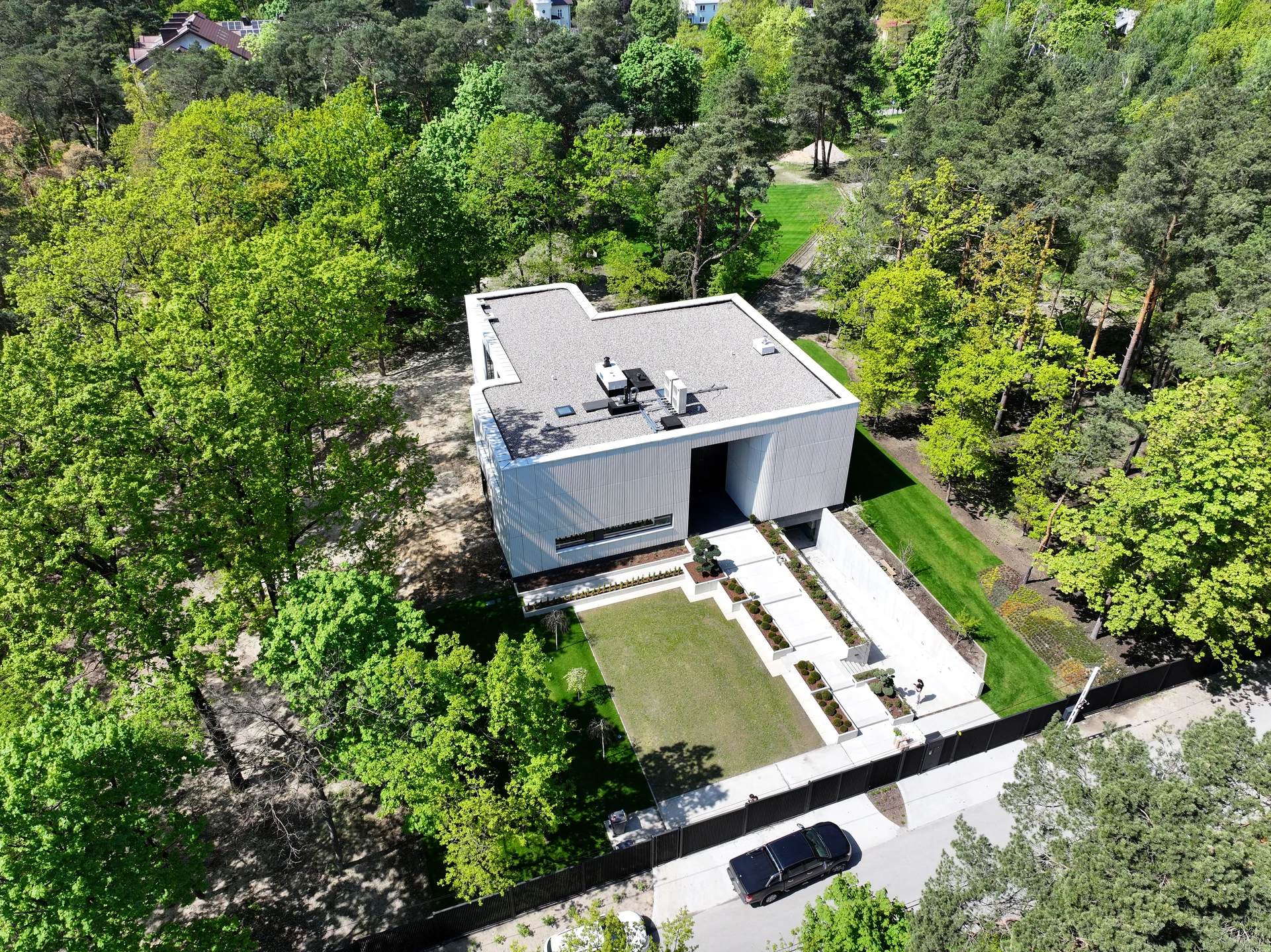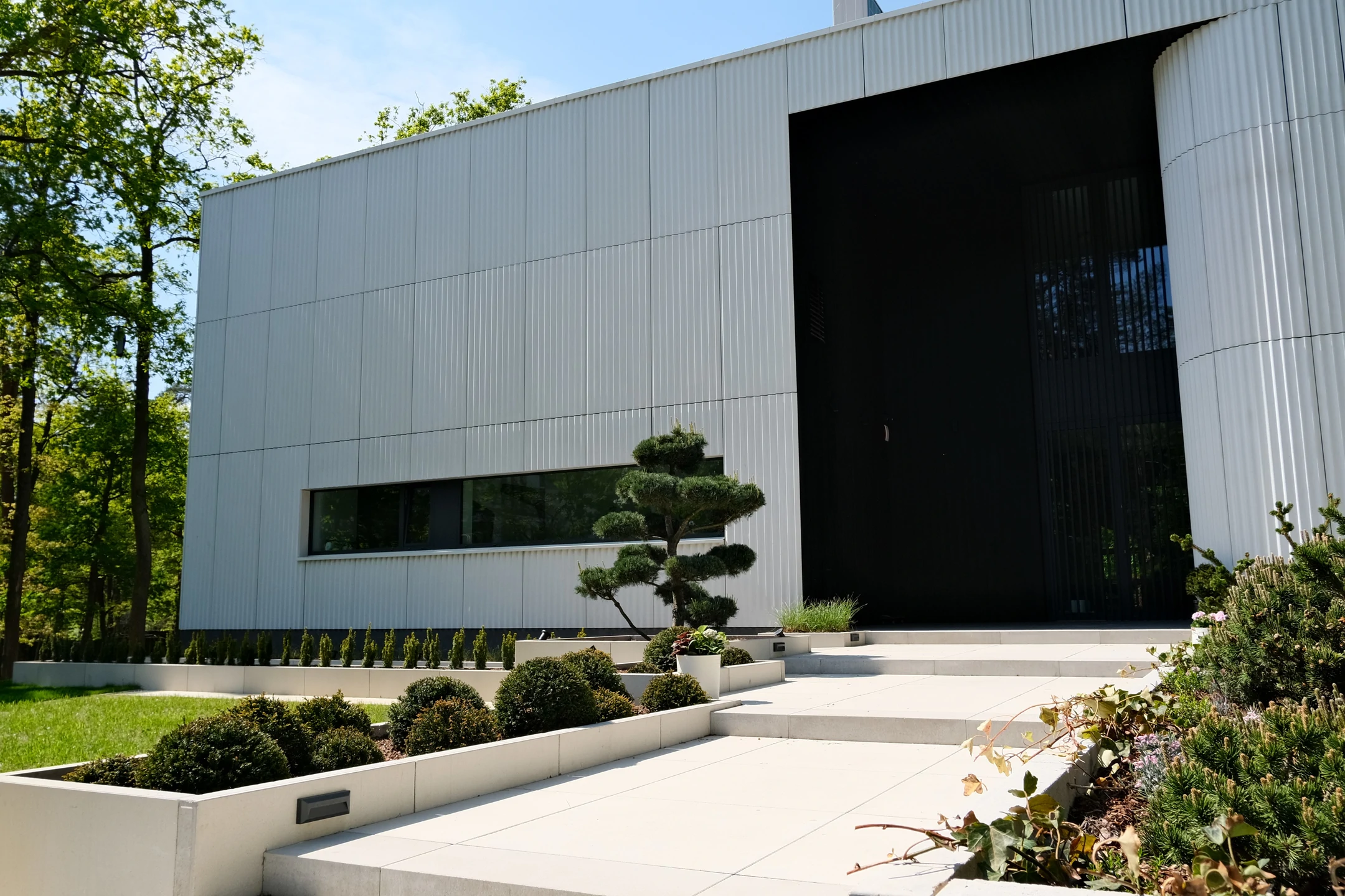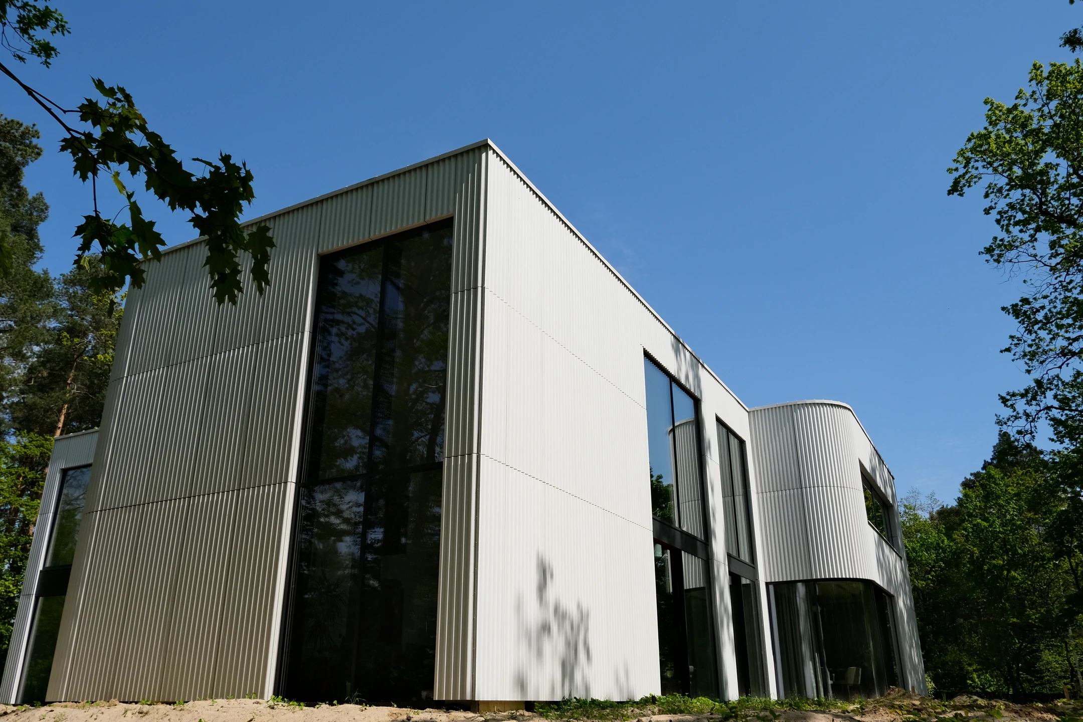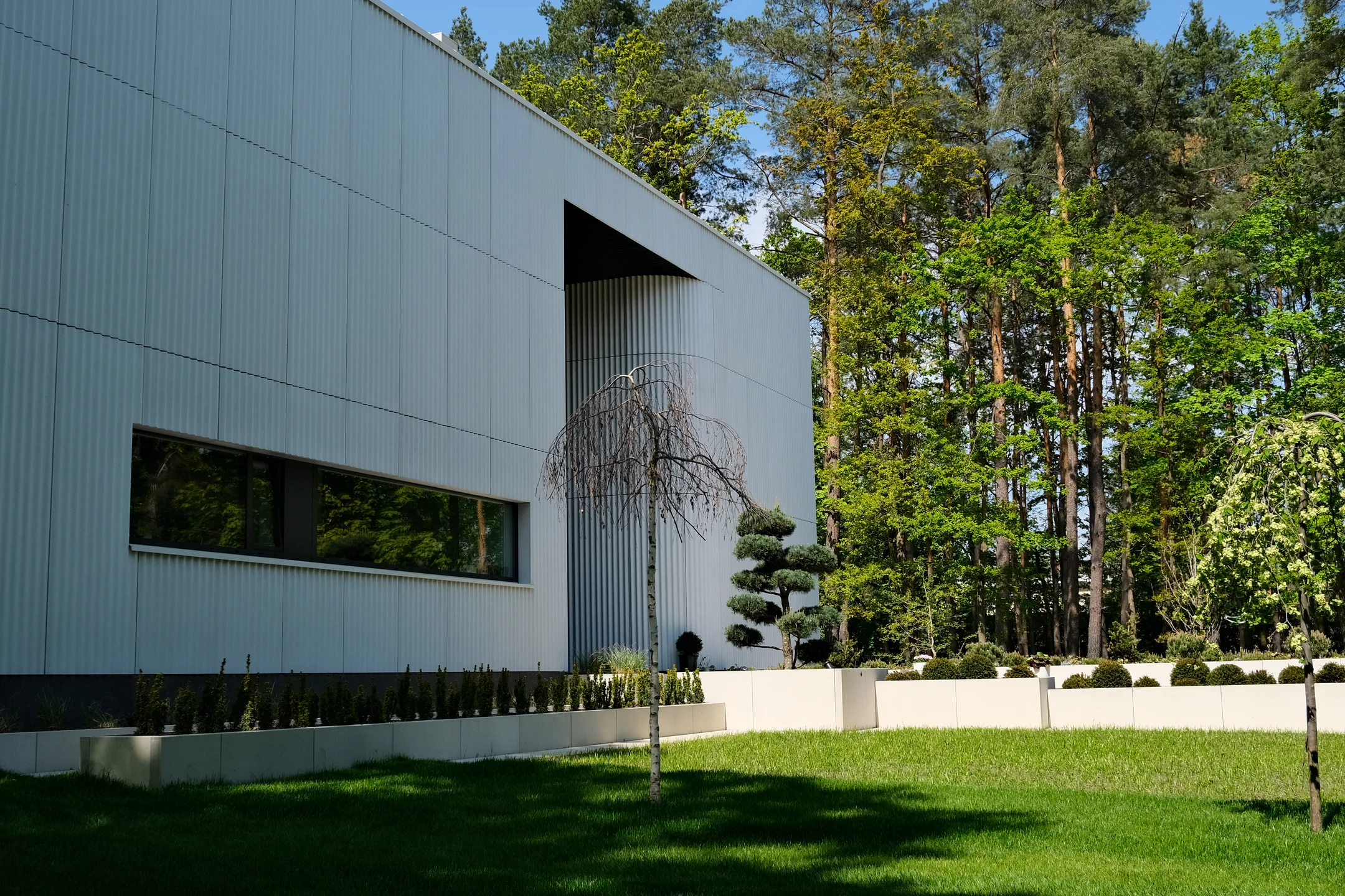 Bryłę obiektu zaprojektowano jako minimalistyczną, kubiczną formę z płaskim dachem, dużymi
