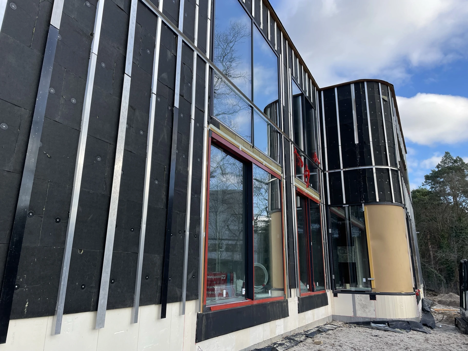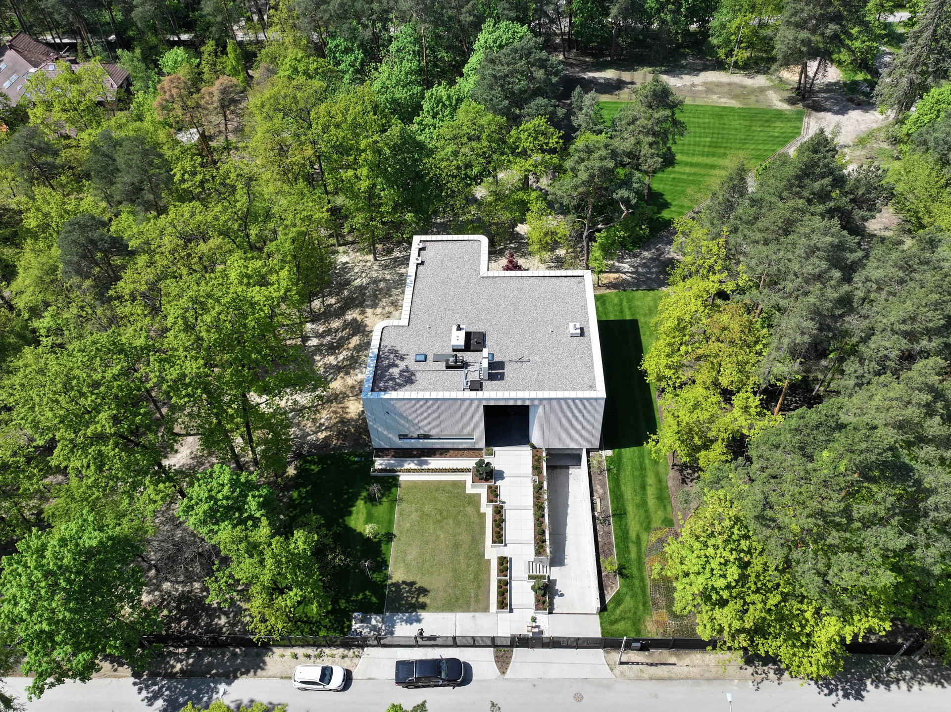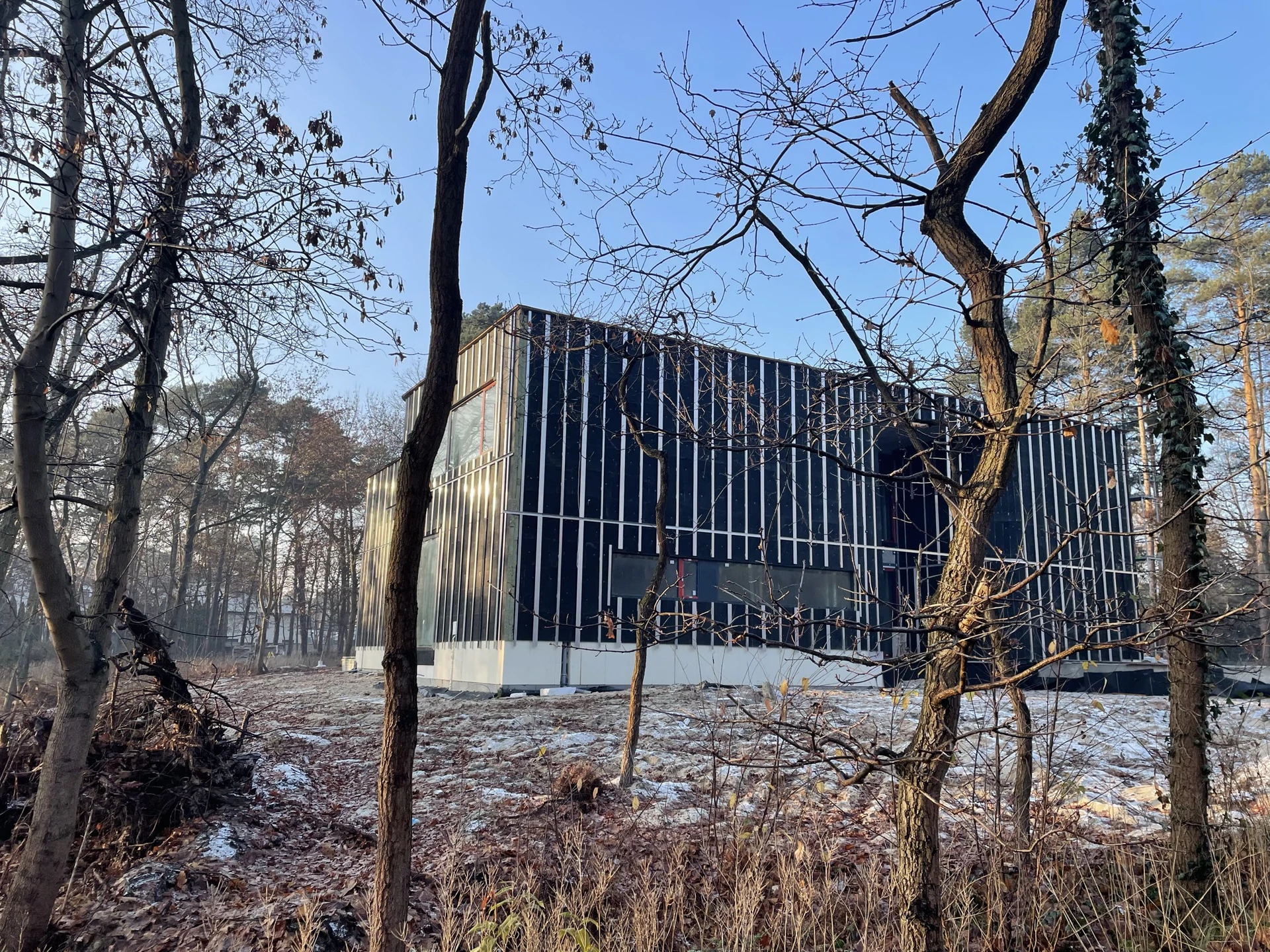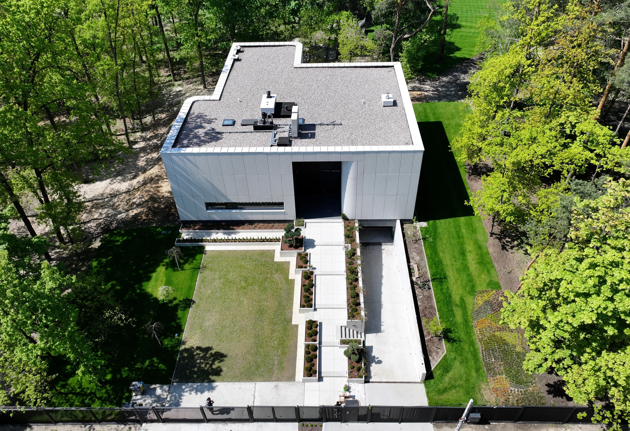 Bryłę obiektu zaprojektowano jako minimalistyczną, kubiczną formę z płaskim dachem, dużymi
