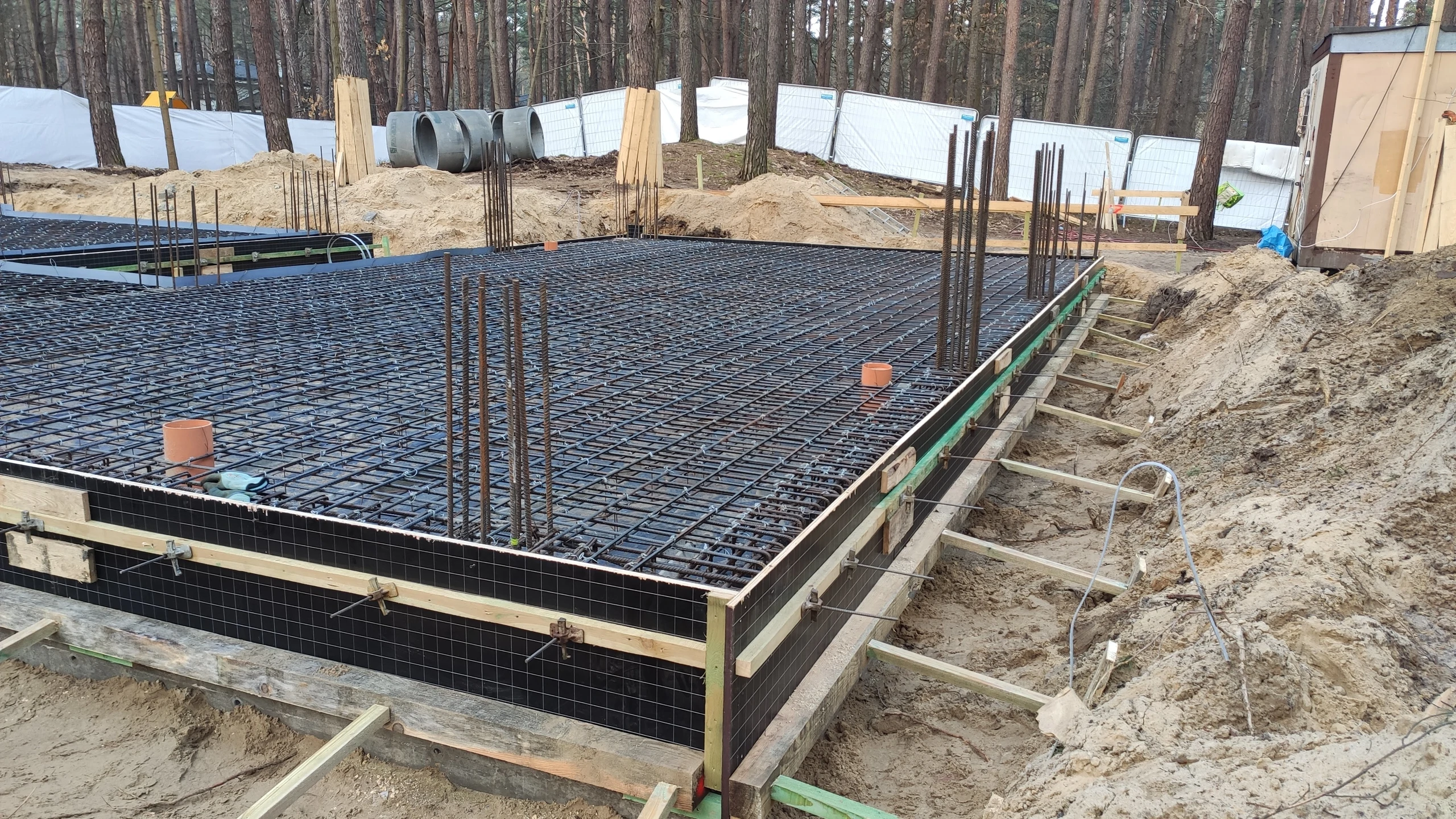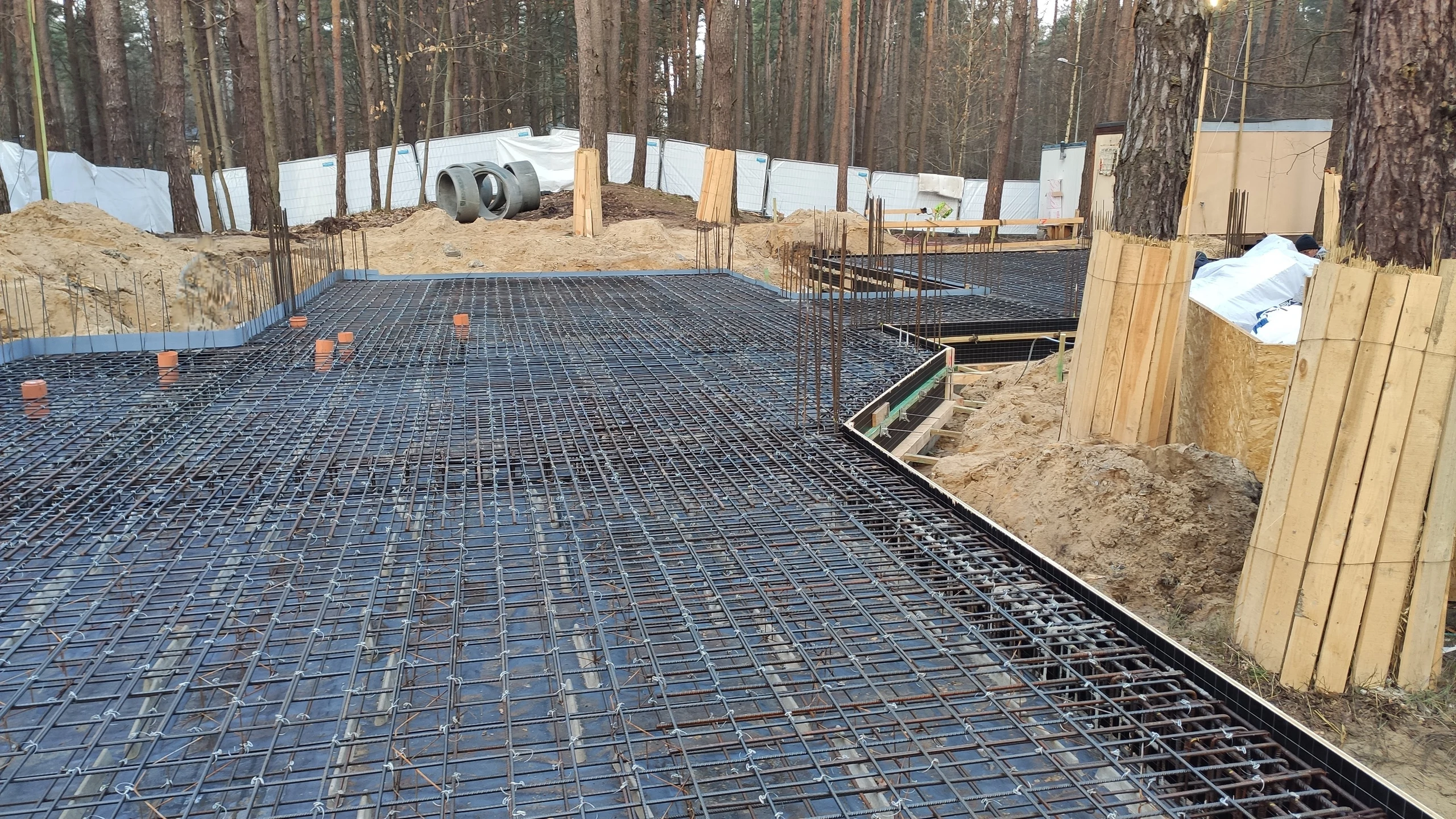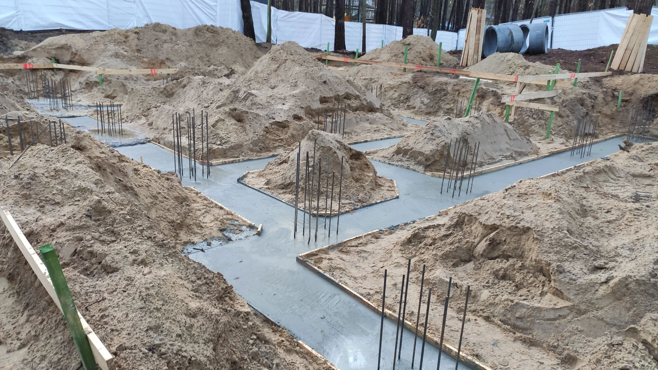 Budynek posadowiono na płycie fundamentowej opartej na studniach i ławach fundamentowych.