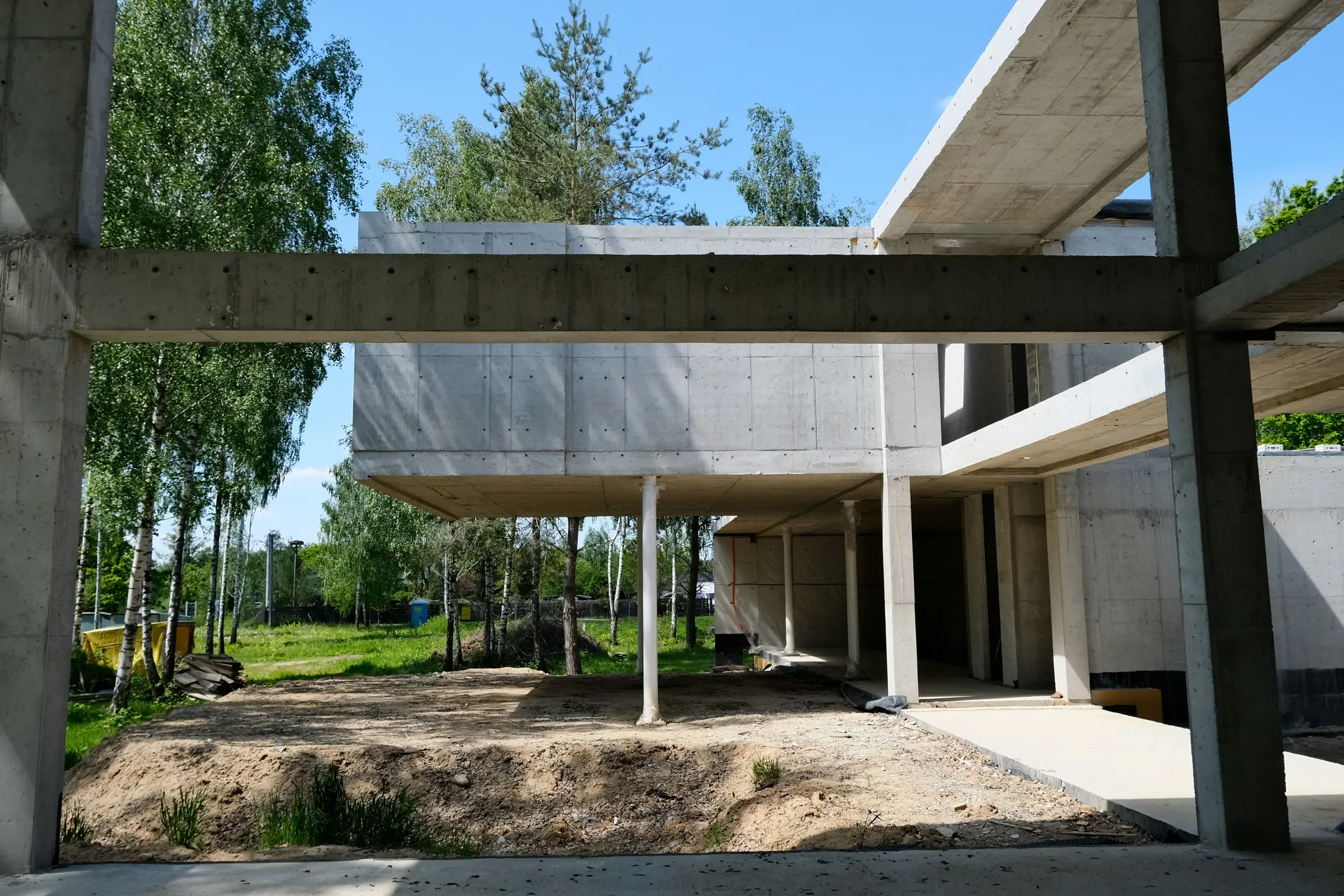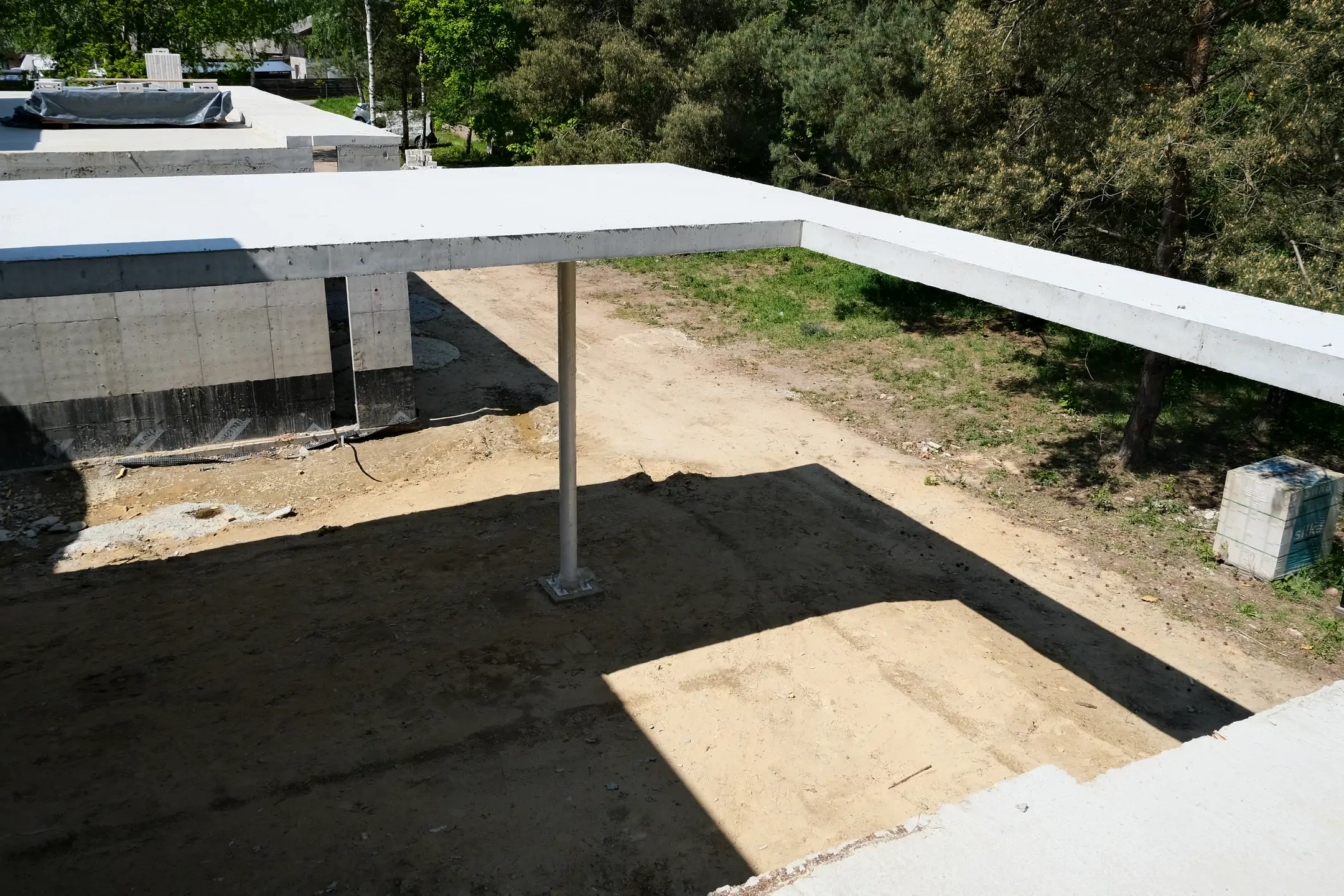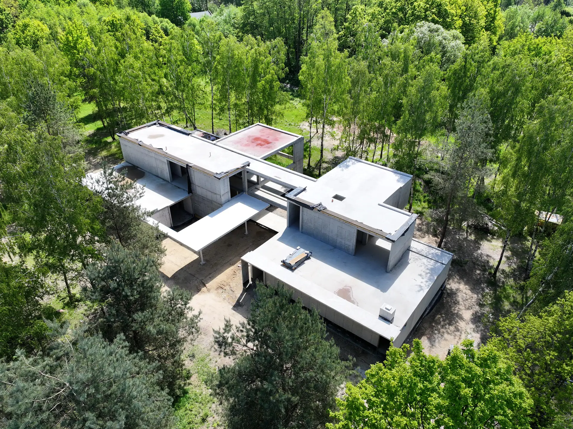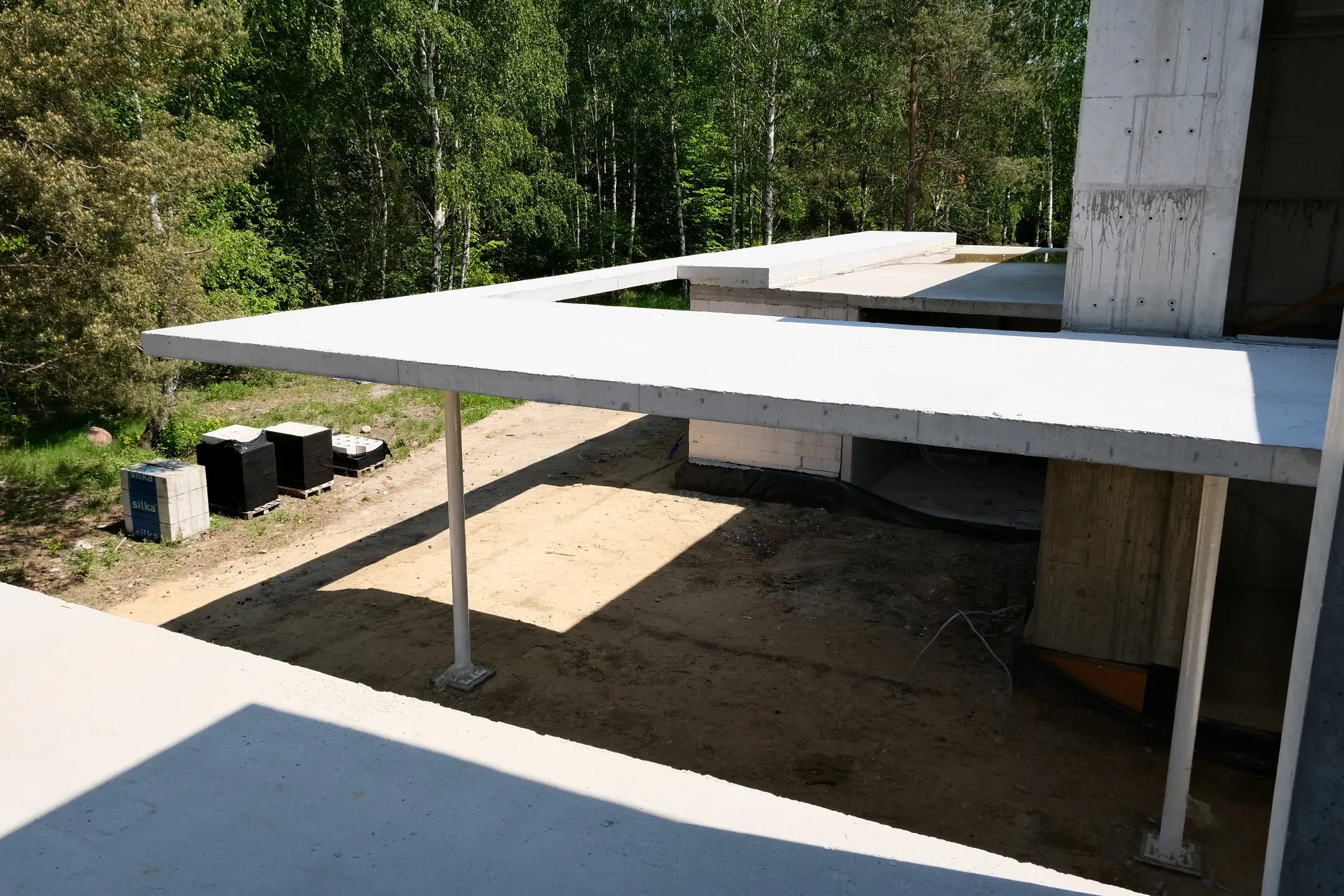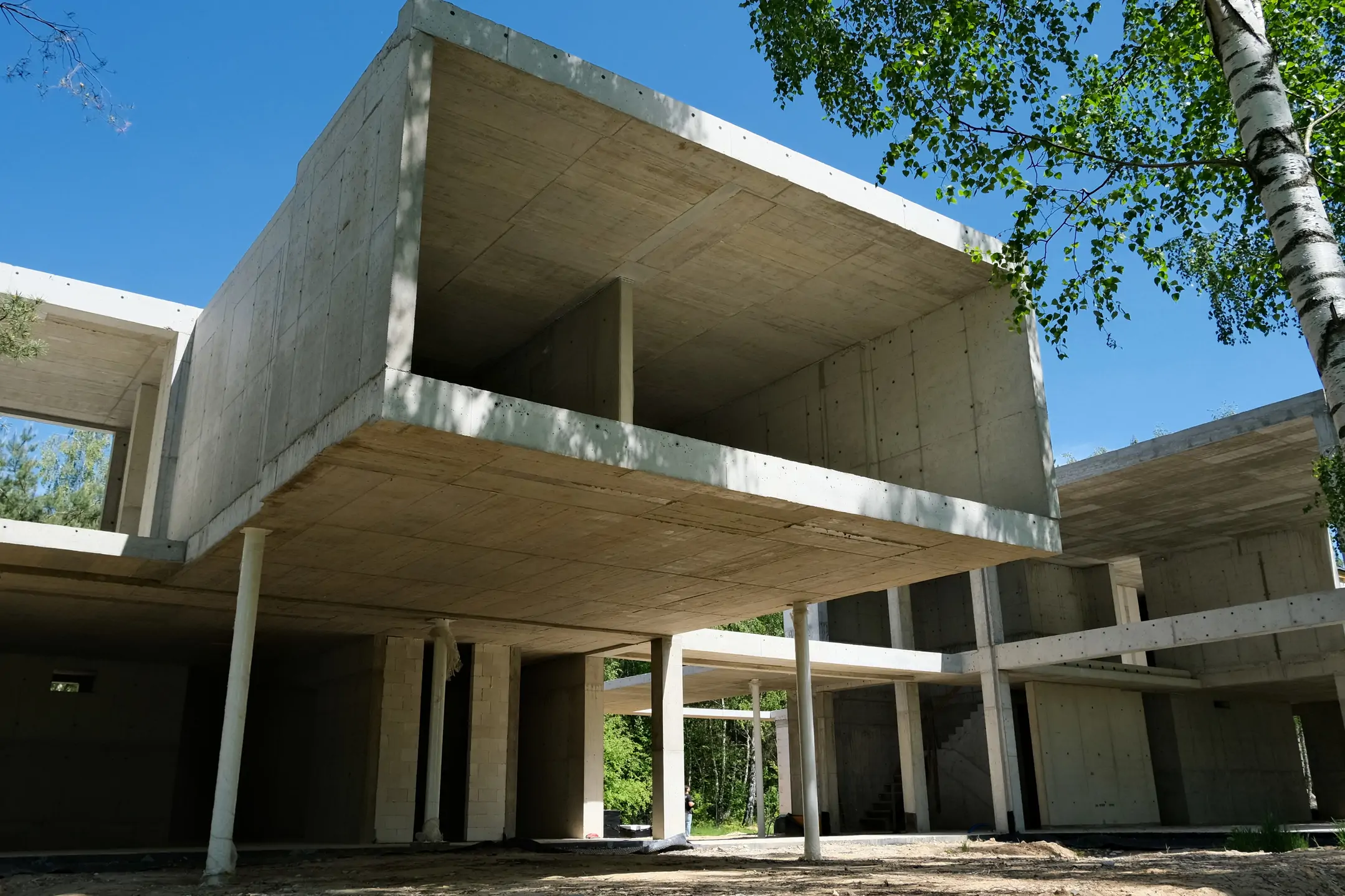 Realizacja w Kamionce obejmowała budowę nowoczesnego budynku jednorodzinnego o powierzchni 545 m², z rozbudowaną konstrukcją żelbetową i wymagającym zakresem robót konstrukcyjnych. Inwestycja została zaprojektowana jako obiekt o minimalistycznej bryle, dużych rozpiętościach, licznych nadwieszeniach oraz szerokich podcieniach, co wymagało precyzyjnego wykonania elementów nośnych i bardzo dokładnej koordynacji prac na etapie stanu surowego.