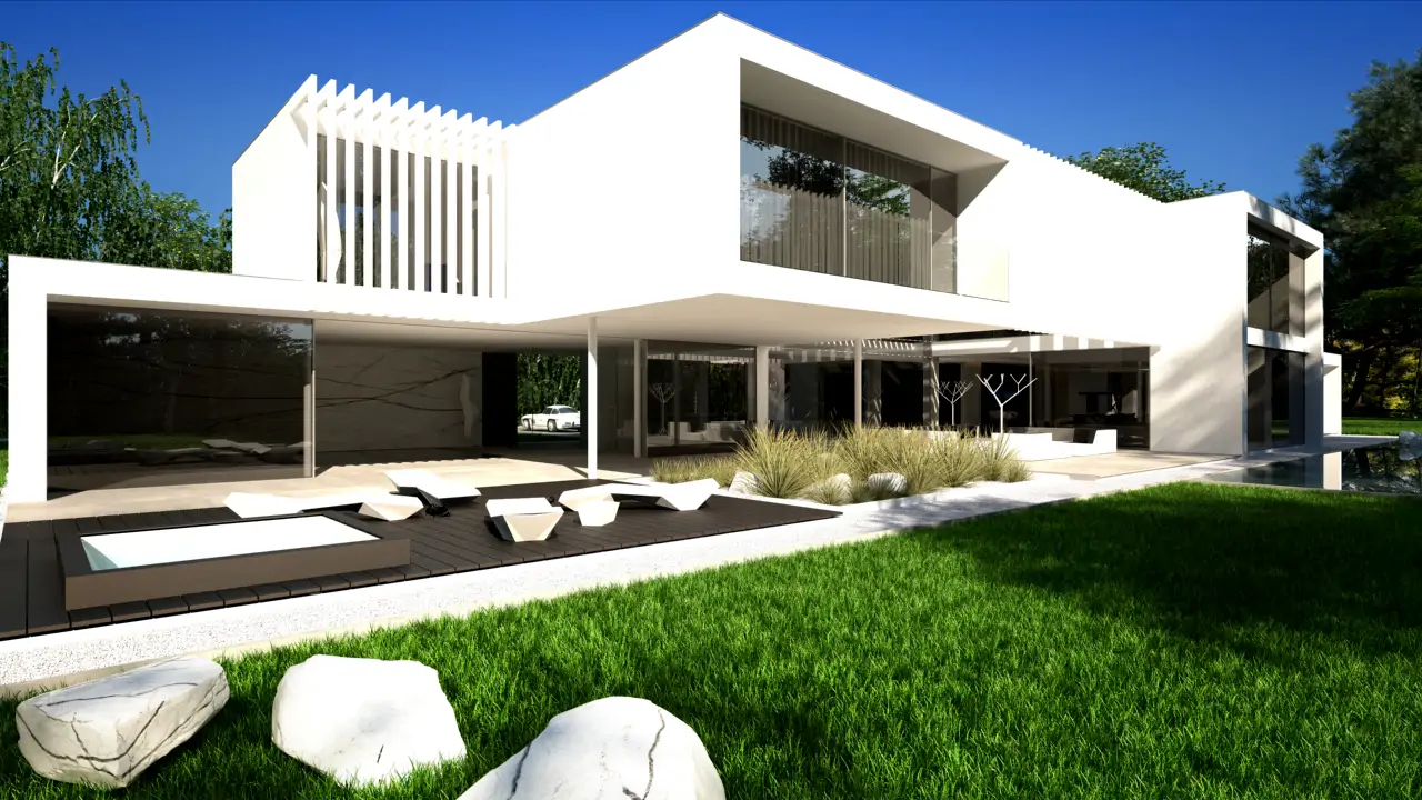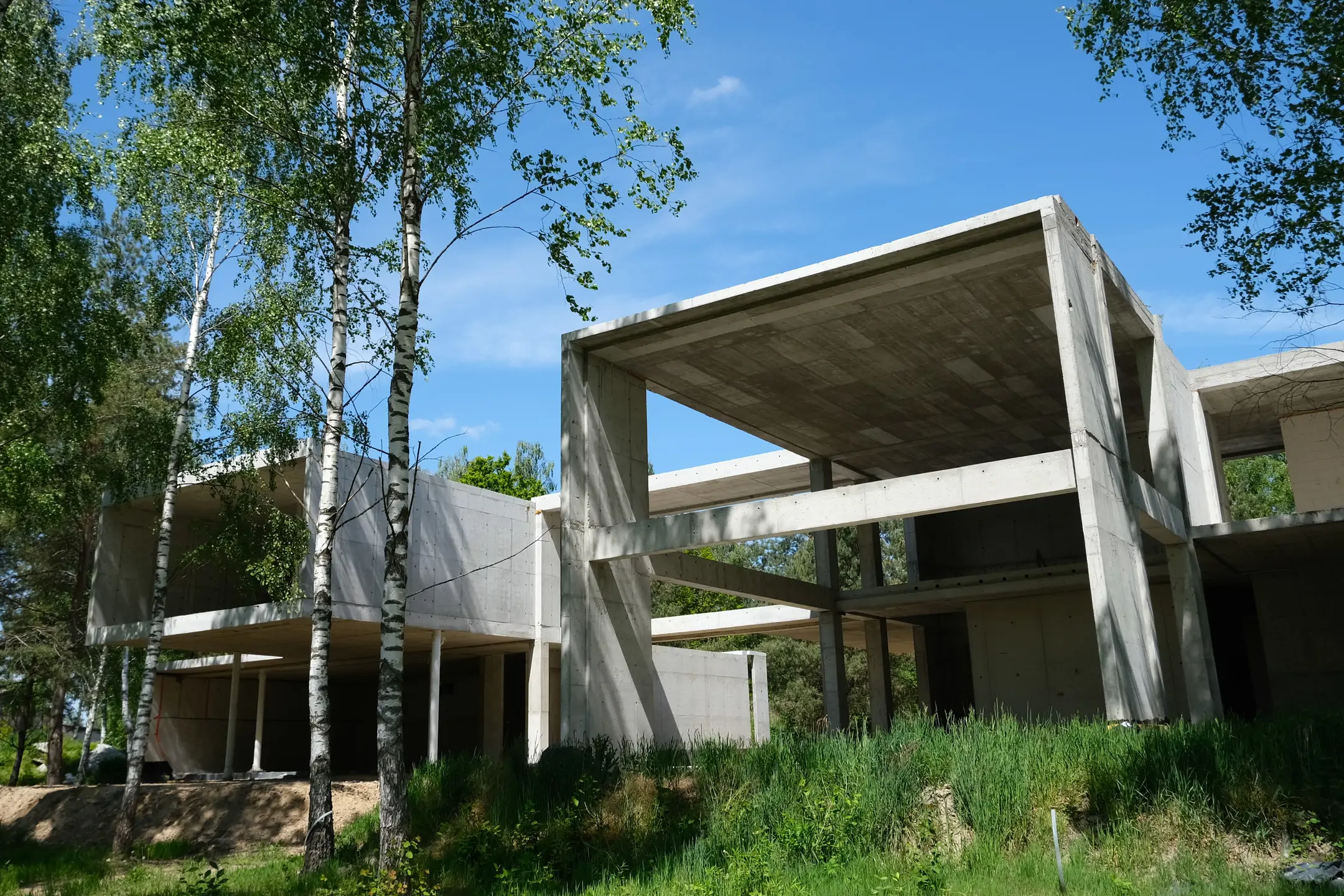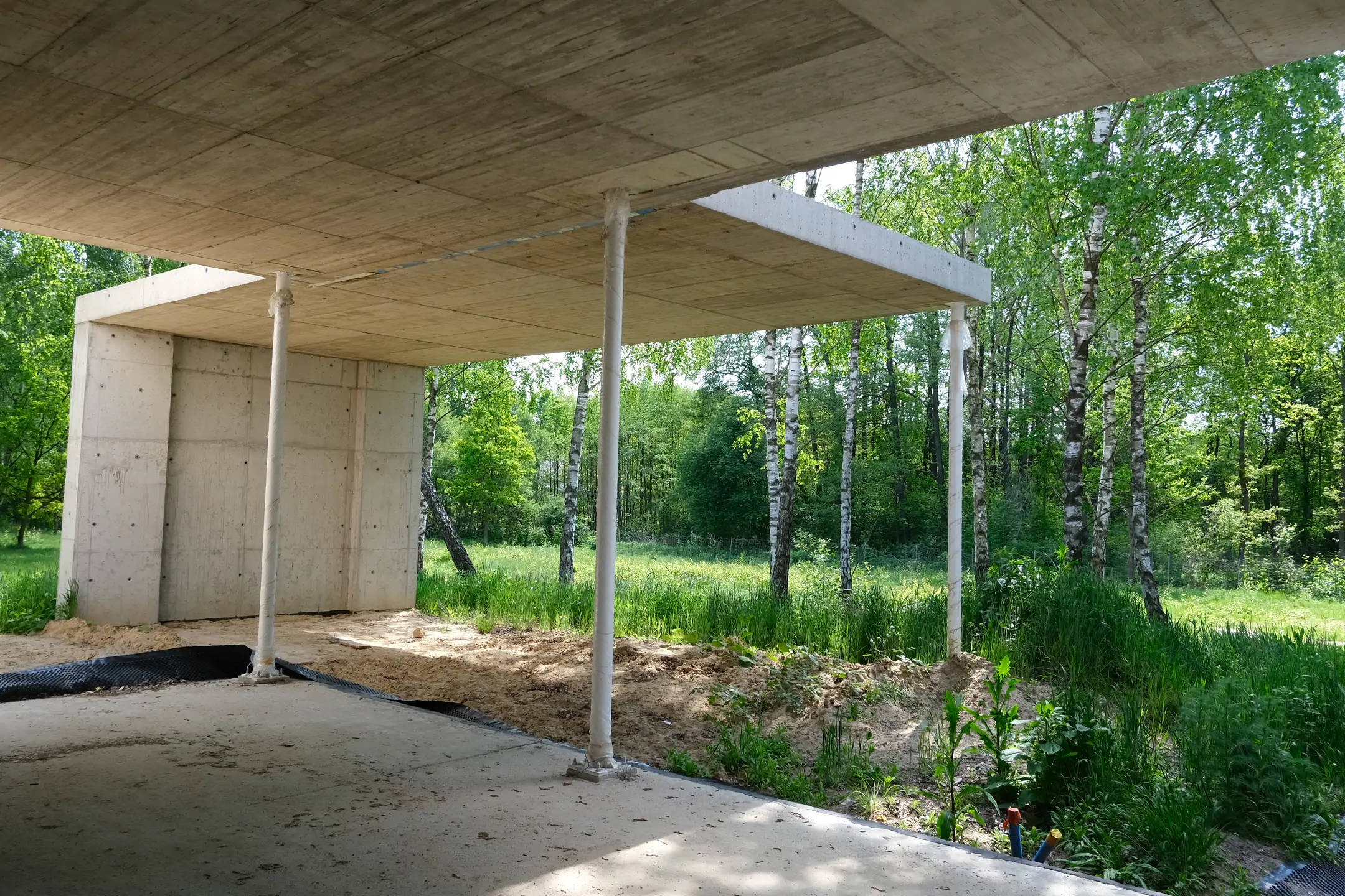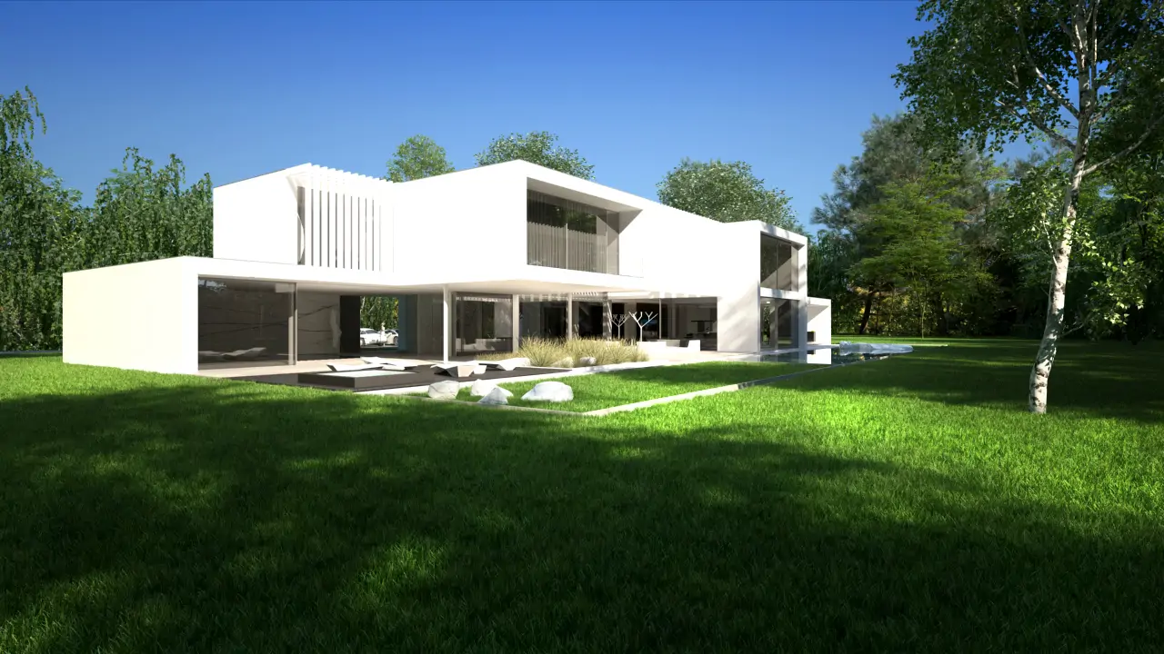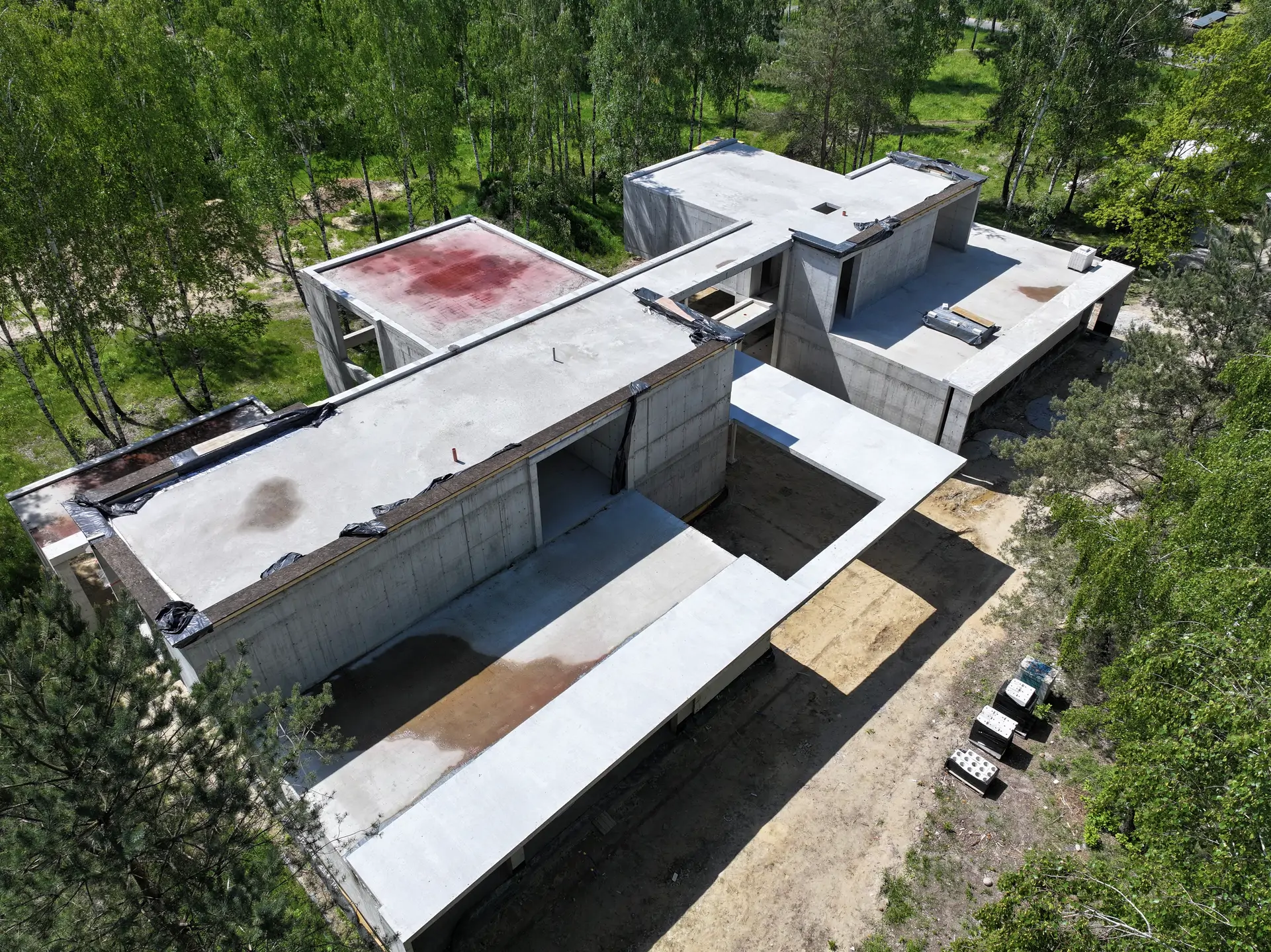 Realizacja w Kamionce obejmowała budowę nowoczesnego budynku jednorodzinnego o powierzchni 545 m², z rozbudowaną konstrukcją żelbetową i wymagającym zakresem robót konstrukcyjnych. Inwestycja została zaprojektowana jako obiekt o minimalistycznej bryle, dużych rozpiętościach, licznych nadwieszeniach oraz szerokich podcieniach, co wymagało precyzyjnego wykonania elementów nośnych i bardzo dokładnej koordynacji prac na etapie stanu surowego.