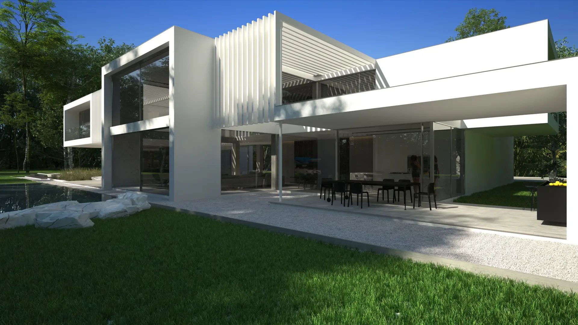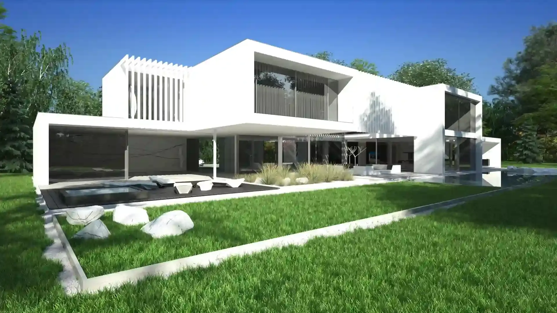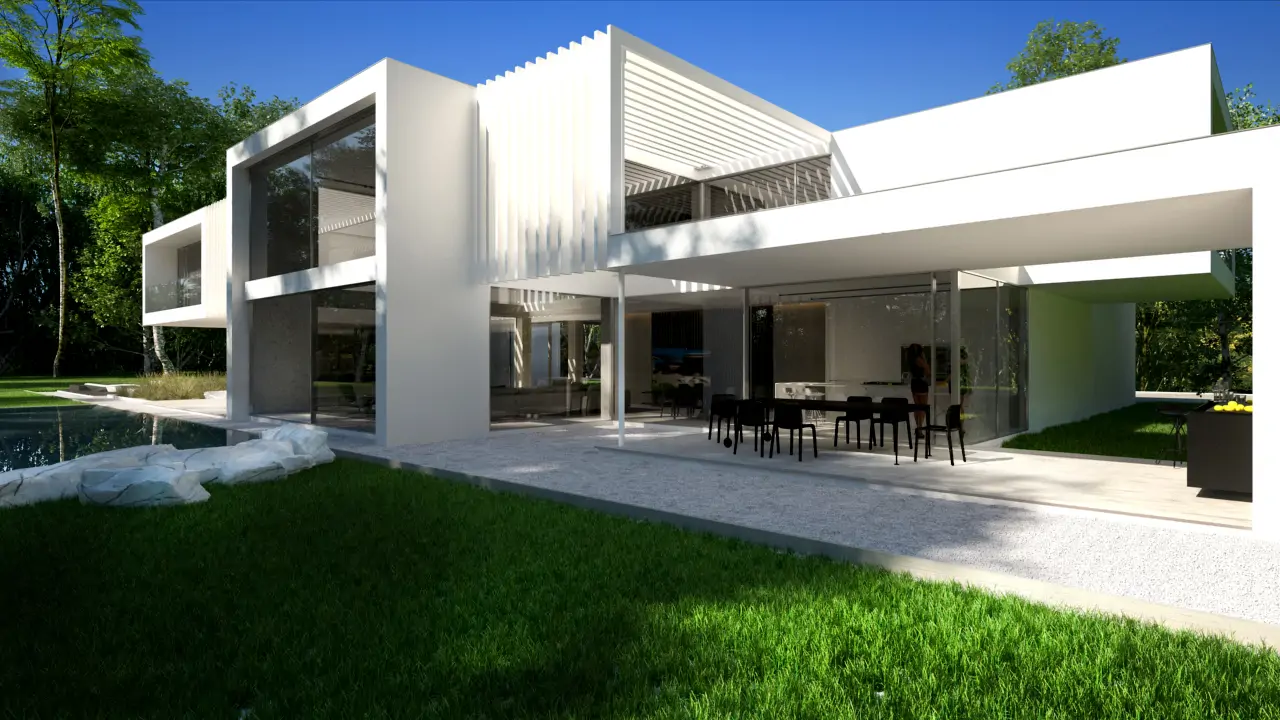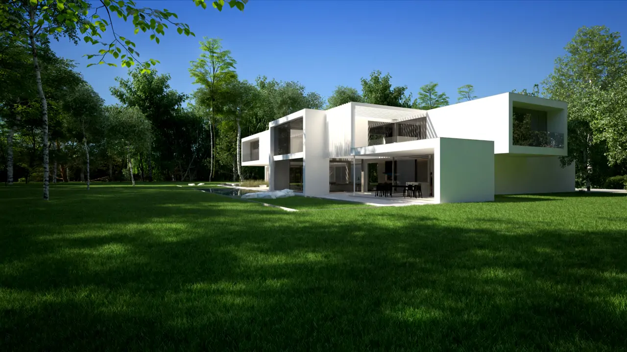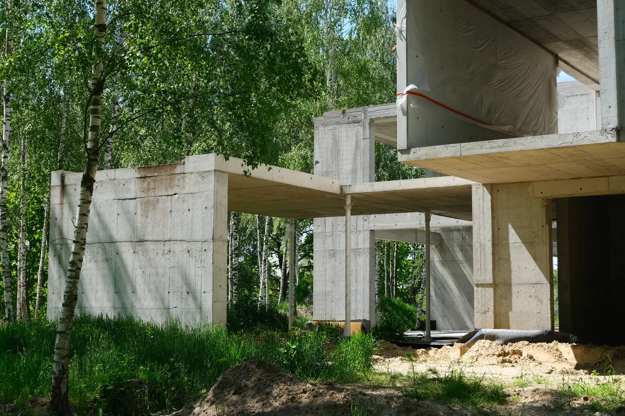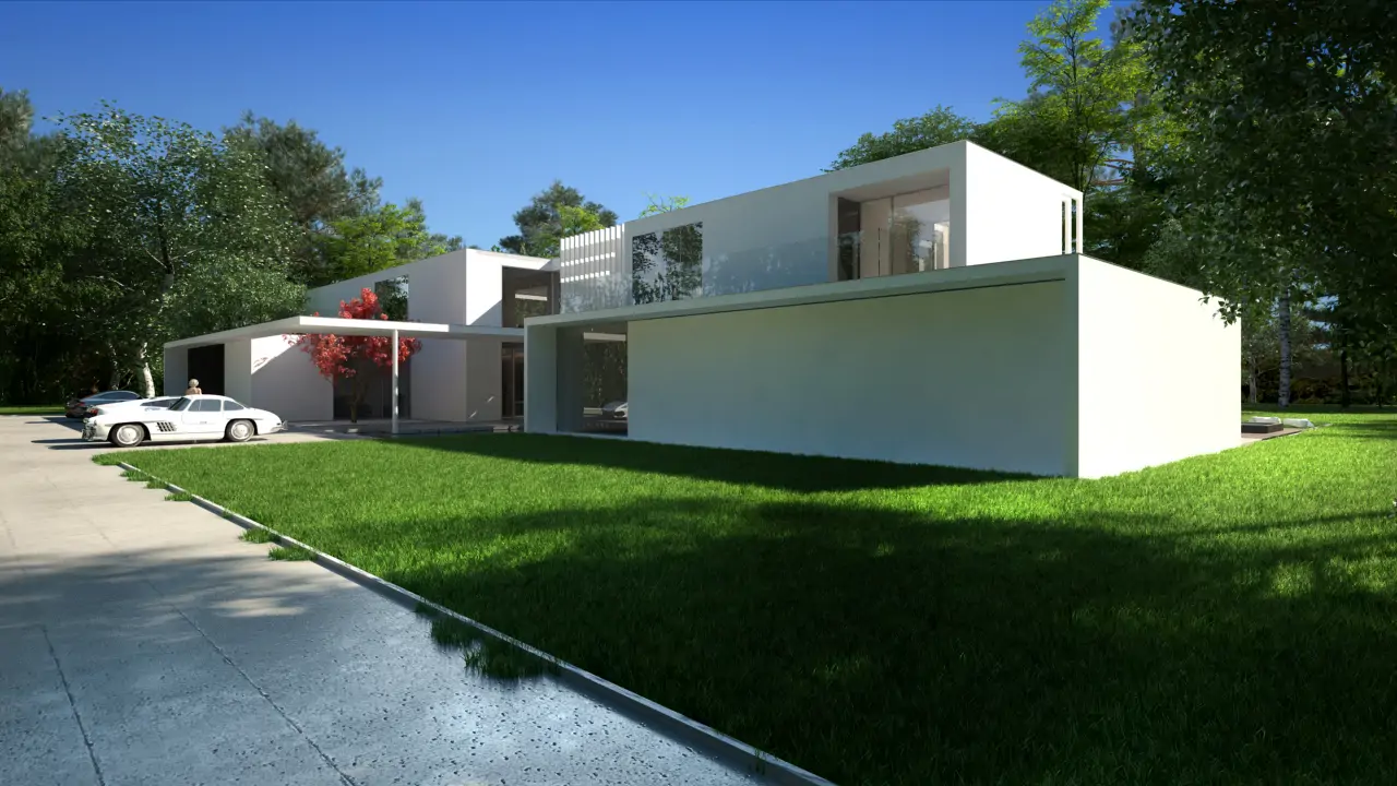 Realizacja w Kamionce obejmowała budowę nowoczesnego budynku jednorodzinnego o powierzchni 545 m², z rozbudowaną konstrukcją żelbetową i wymagającym zakresem robót konstrukcyjnych. Inwestycja została zaprojektowana jako obiekt o minimalistycznej bryle, dużych rozpiętościach, licznych nadwieszeniach oraz szerokich podcieniach, co wymagało precyzyjnego wykonania elementów nośnych i bardzo dokładnej koordynacji prac na etapie stanu surowego.