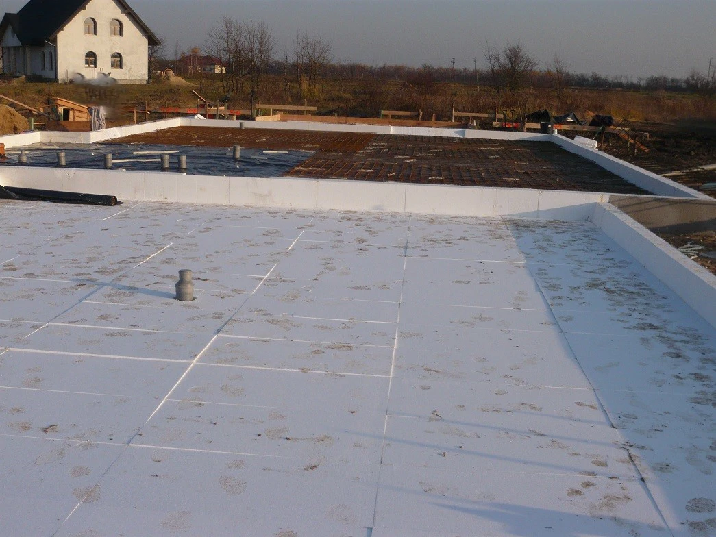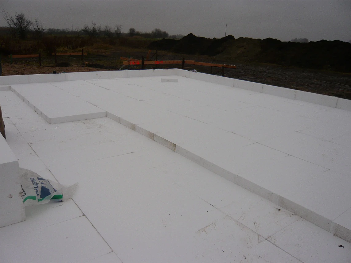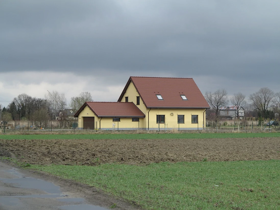 Projekt indywidualny. Grunty torfowe. Budynek posadowiony na płycie fundamentowej. Ściany wykonane z silikatów. Elewacja BSO. Pokrycie dachowe blachodachówka.