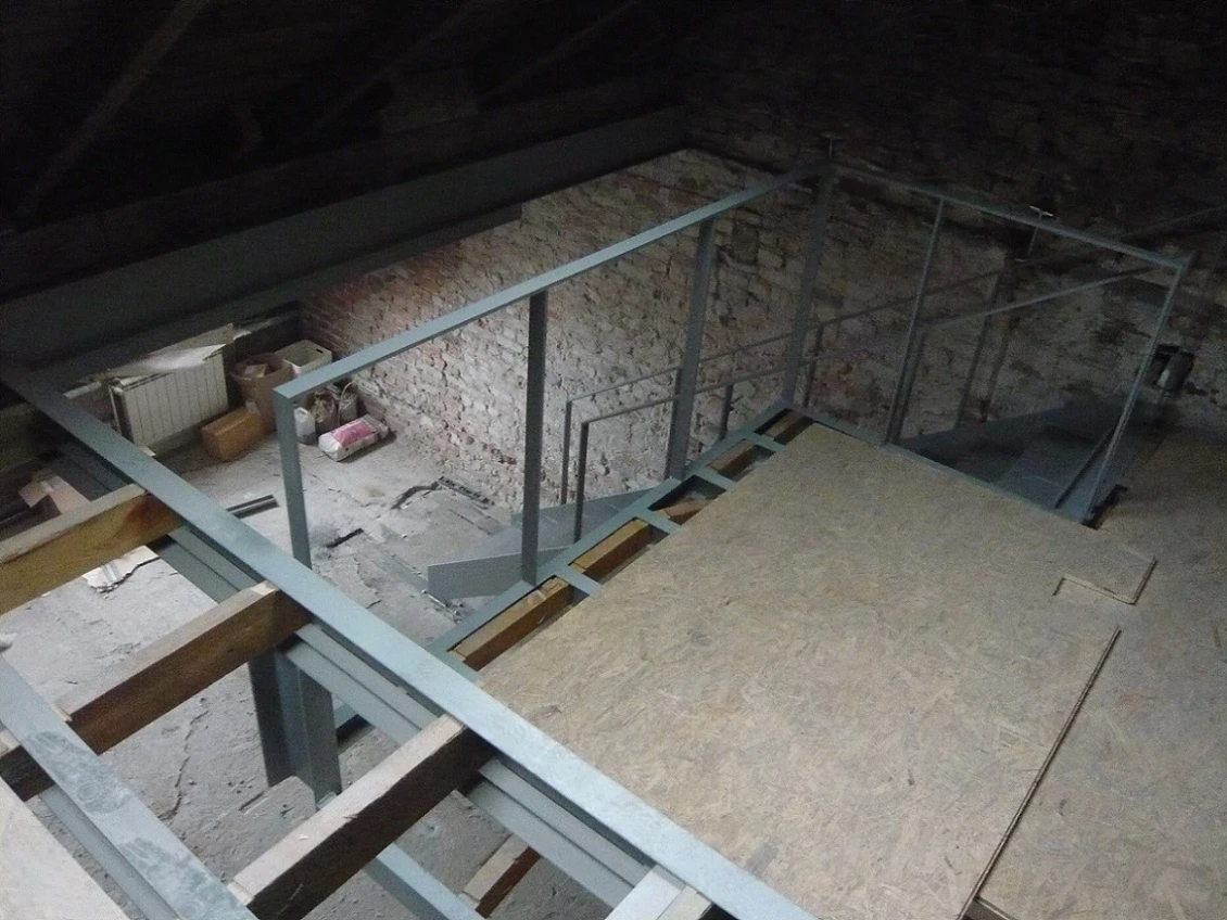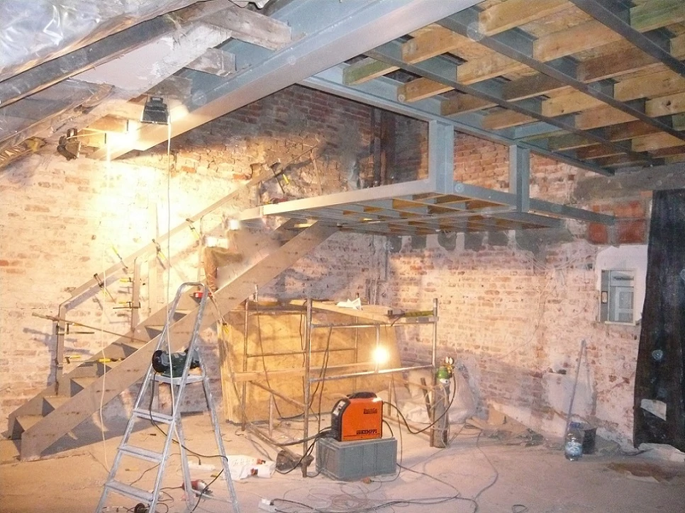 Wykonanie remontu mieszkania. Przebudowa układu i przygotowania przestrzeni pod nowe funkcje. Wykonanie antresoli – stalowa rama + podest (częściowo z płytą OSB) oraz montaż schodów stalowych z balustradą. Wzmocnienia / nowe oparcia konstrukcji – kotwienie stalowych słupów i belek w murze/posadzce, przygotowanie pod przyszłą podłogę antresoli.