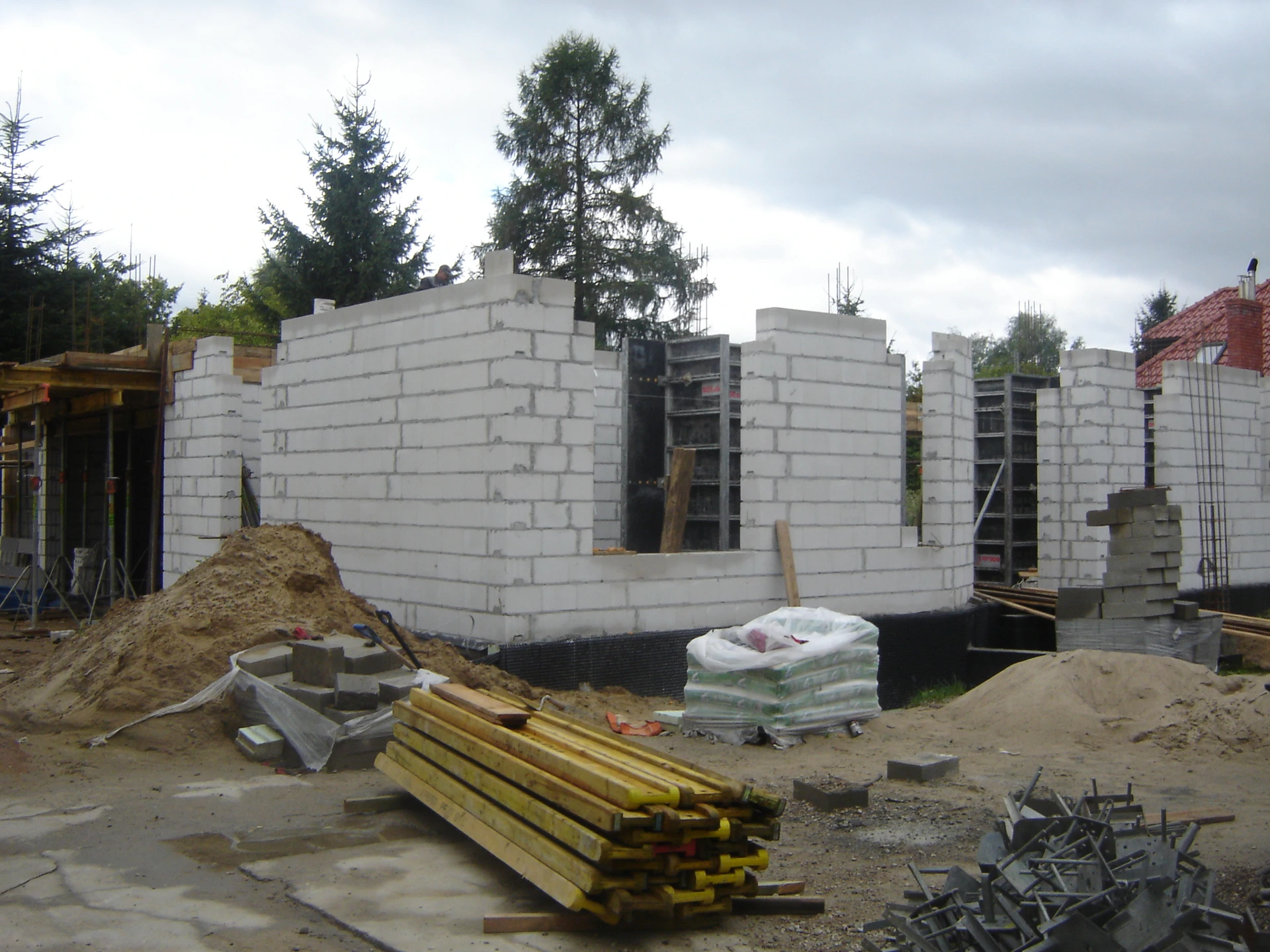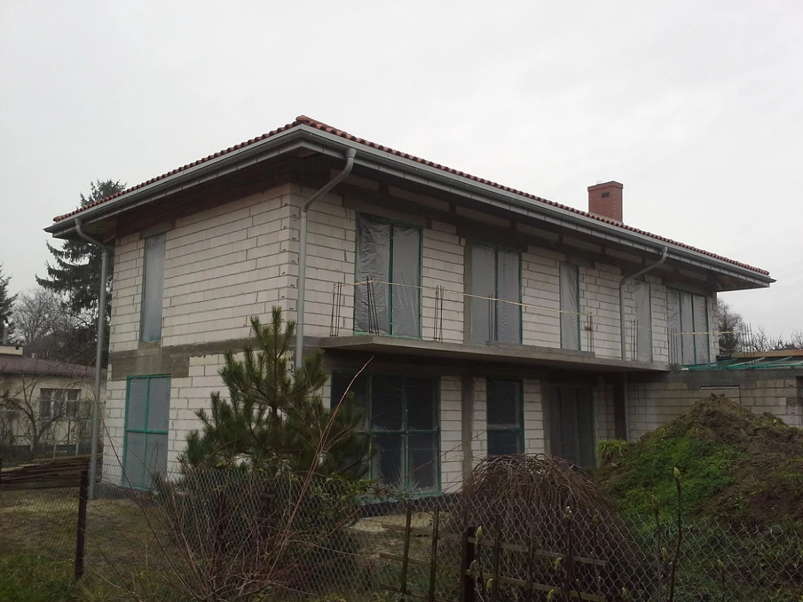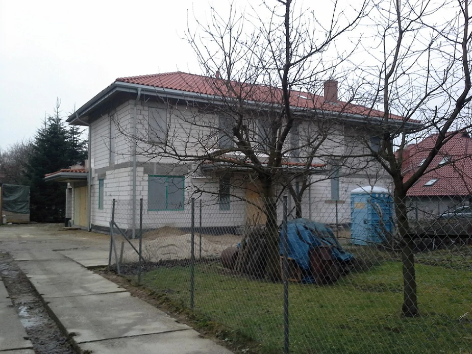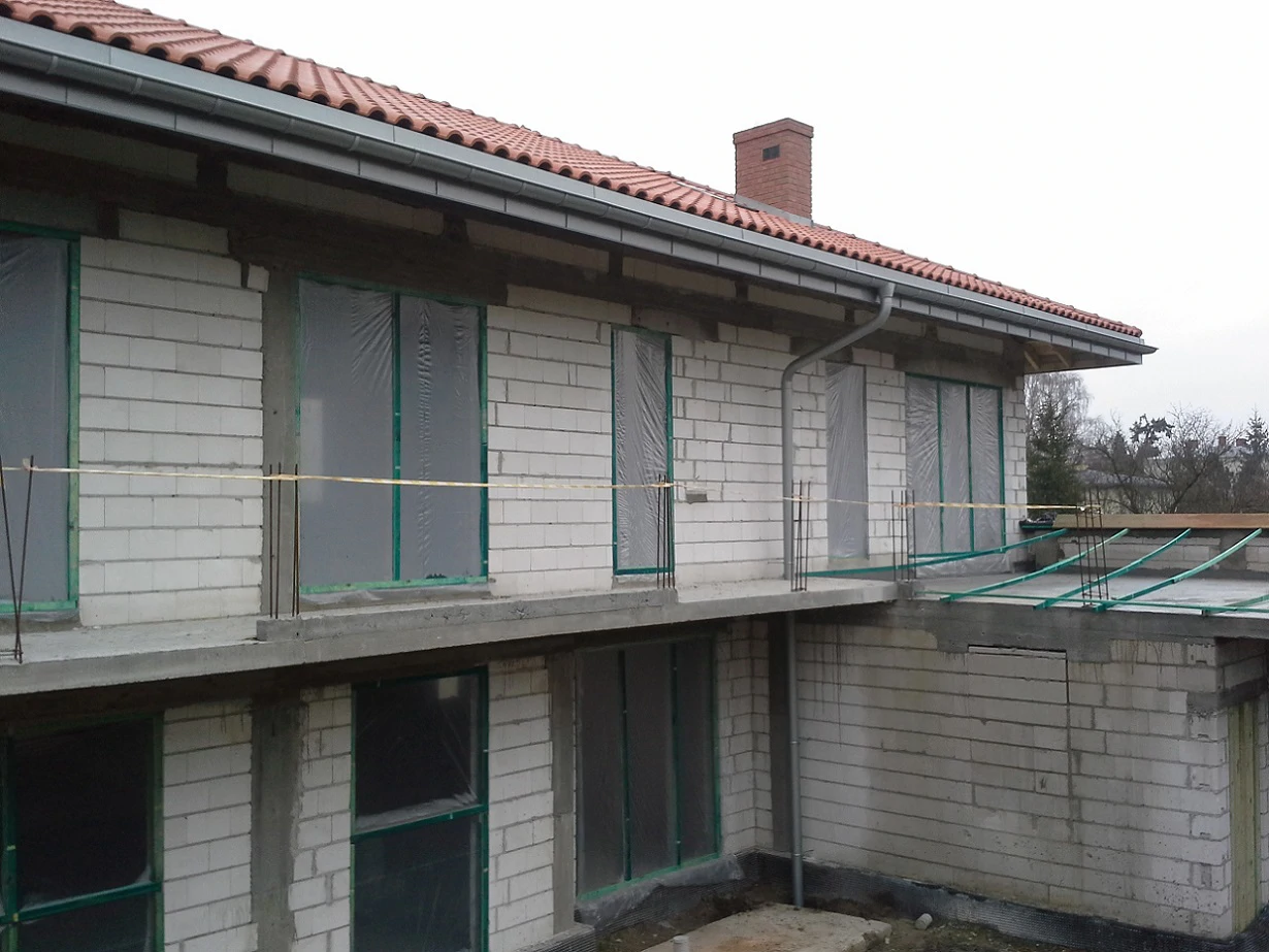 Projekt indywidualny. Budynek posadowiony na ławach fundamentowych. Ściany z POROTHERM 25 P+W. Stropy żelbetowe, pokrycie dachu - dachówka karpiówka, ogrzewanie nadmuchowe.